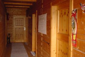 Küche mit fließend Kaltwasser, Holzherd zum Kochen und zur Warmwasseraufbereitung, WC, 2 Schlafzimmer für 2 Personen (Doppelbett), 1 Schlafzimmer für 2 Personen (getrennte Betten), Balkon und Abstellraum. Neben der Hütte gibt es eine Wiese, einen Grillplatz mit einem großen Tisch und Stühlen und einen Spielplatz.