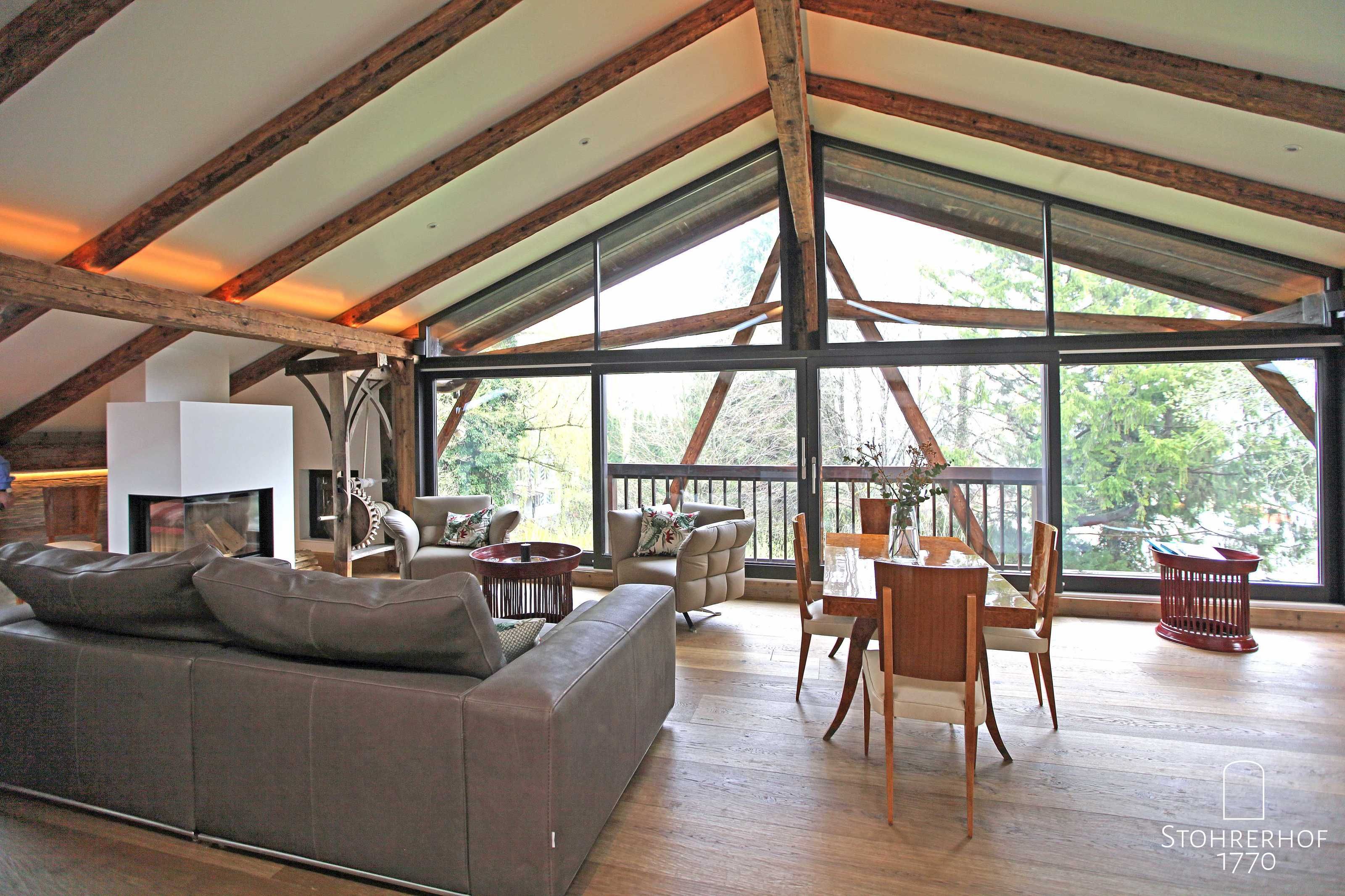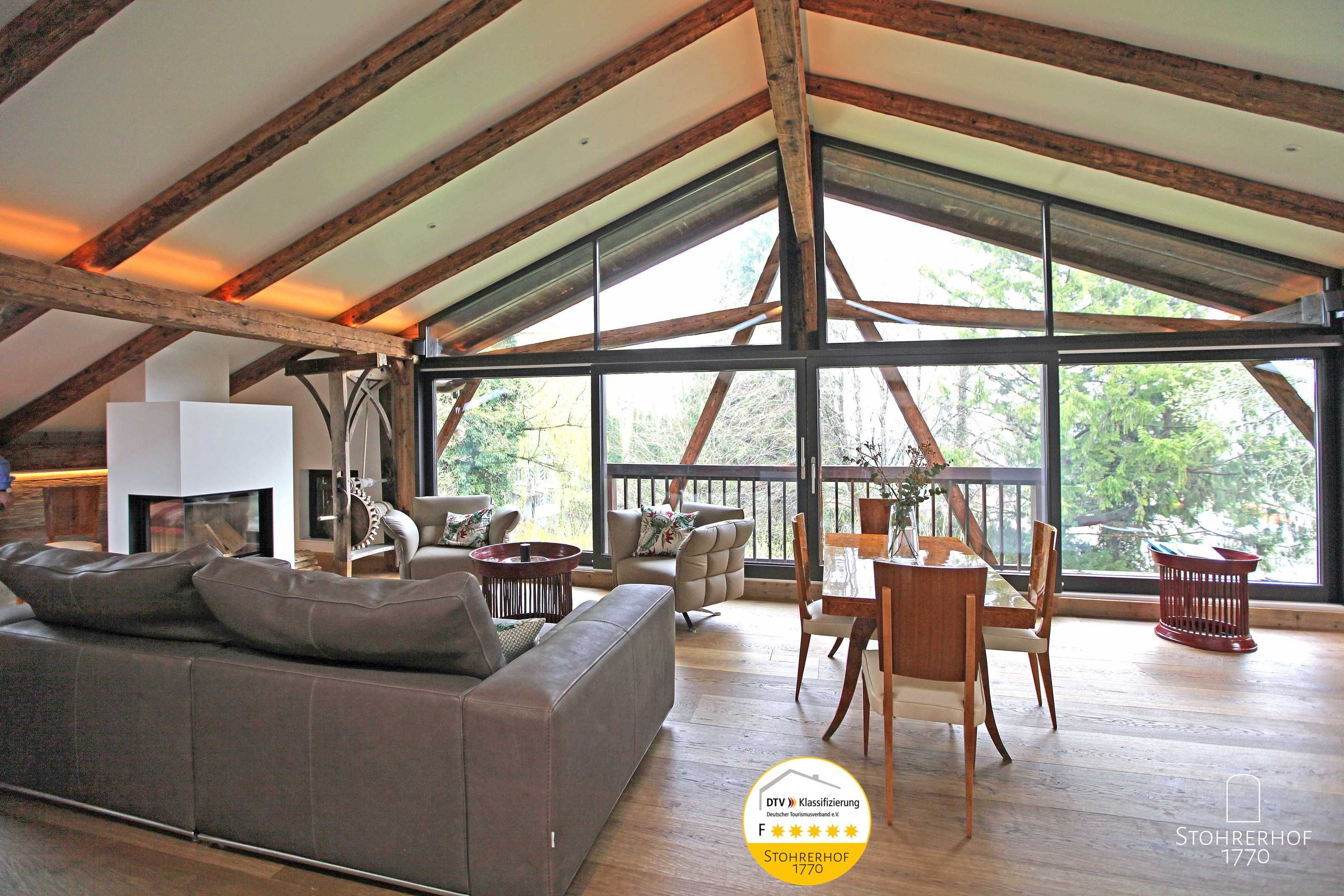 Sie haben die Wahl - entweder Sie buchen das Penthouse individuell und erreichen es über einen separaten Eingang und ein eigenes Treppenhaus, oder Sie buchen das komplette Haus und erreichen das Penthouse bequem über das integrierte Treppenhaus von Erdgeschoss und Belle Etage. Unser Gut Stohrerhof bietet Ihnen flexibel Platz für bis zu 15 Personen - ganz wie Sie wollen.