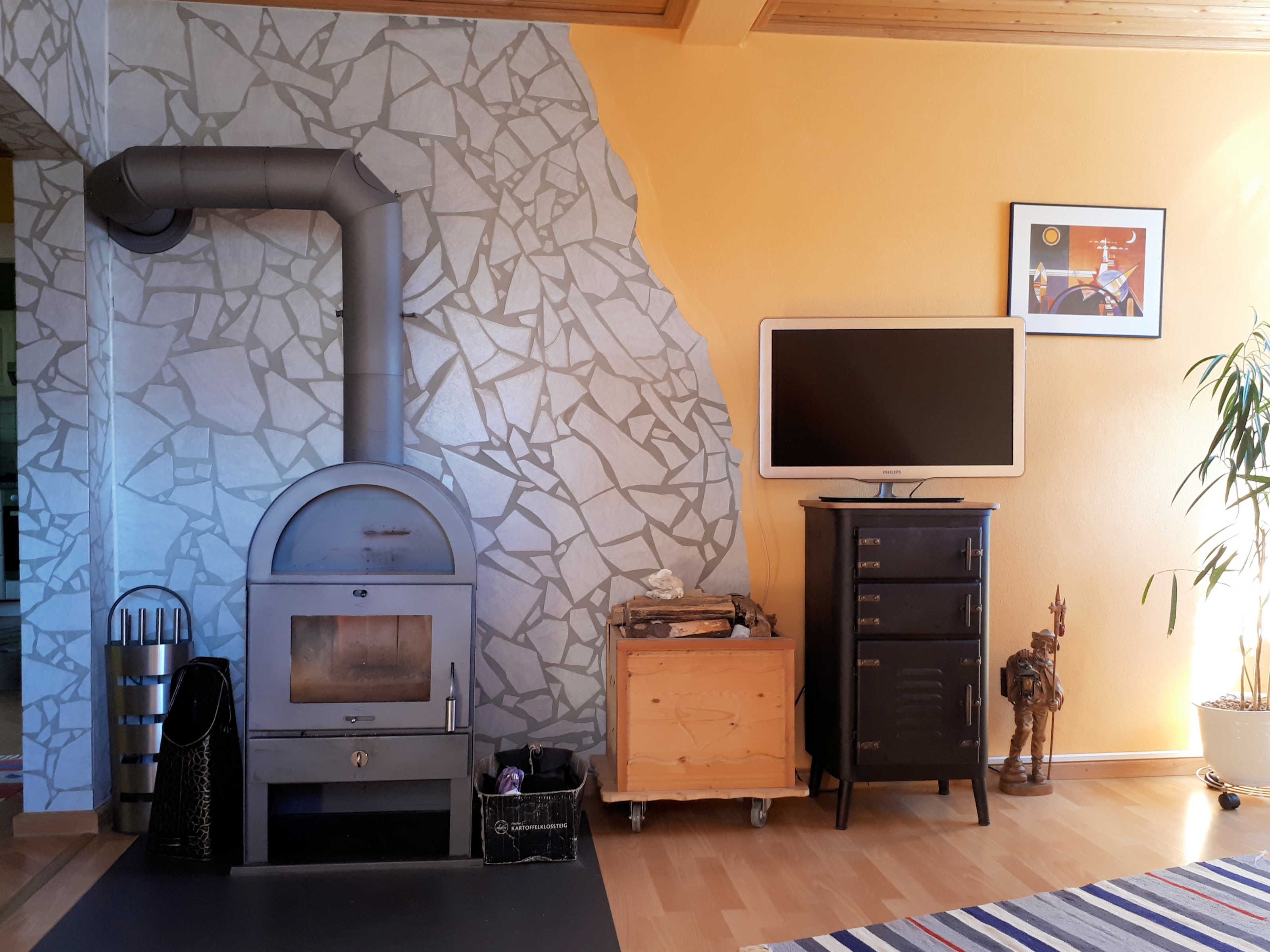 Unsere Nichtraucher-Ferienwohnung verfügt über eine voll ausgestattete Küche inkl. Essecke, ein Wohnzimmer mit Holzofen, TV und Schlafsofa, zwei Schlafzimmer, ein Bad mit Waschmaschine und Trockner und einen kleinen Balkon. Auf Wunsch steht ein Kinderreisebett sowie ein Hochstuhl zur Verfügung.