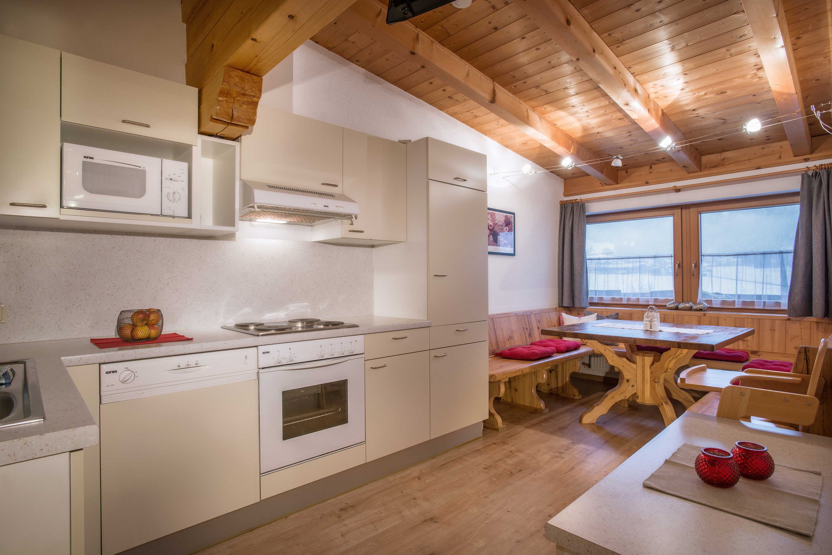• vollausgestattete Küche mit Sitzecke und Fernseher mit SAT-TV sowie Backofen, Mikrowelle, Wasserkocher, Dunstabzug, Elektroherd, Geschirrausstattung, Geschirrspülmaschine, Kaffeemaschine, Kühlschrank, Tisch-/Küchenwäsche