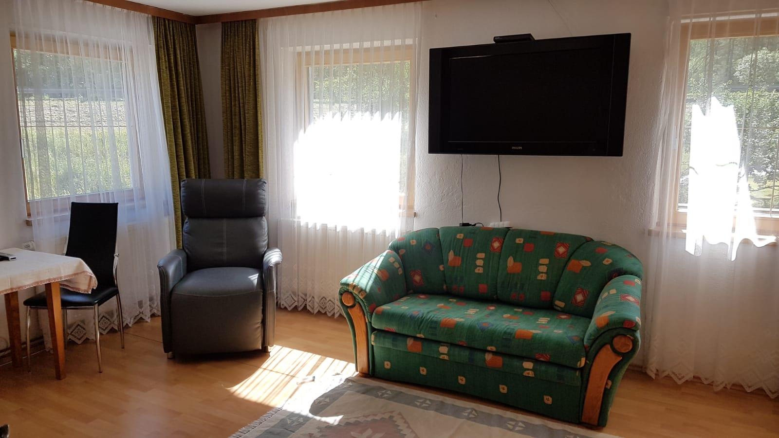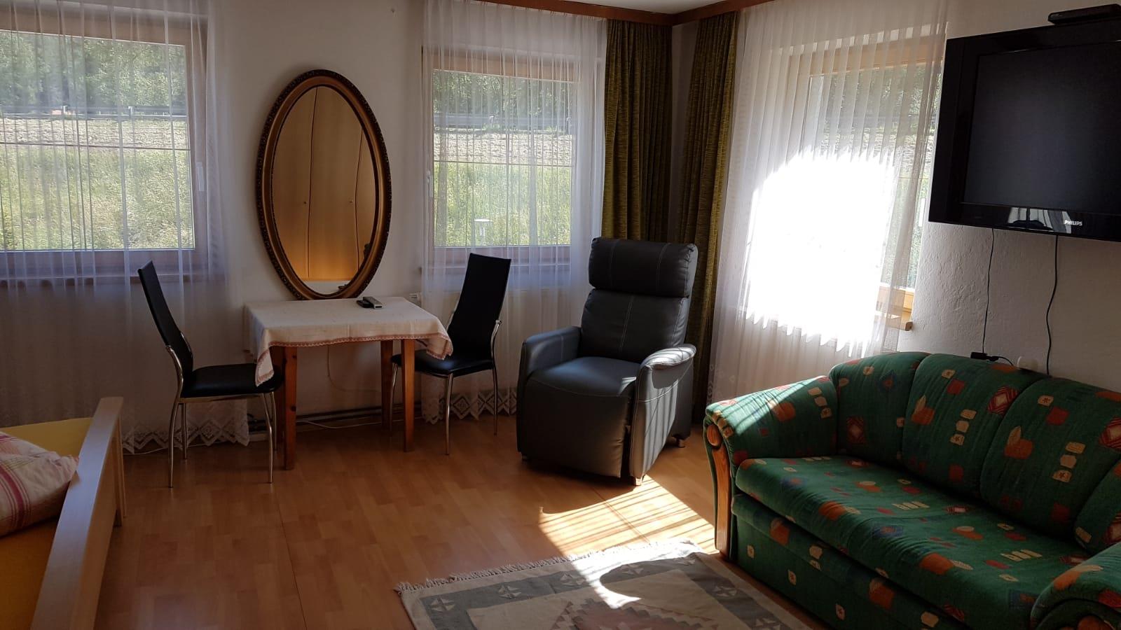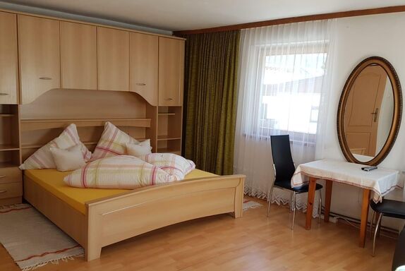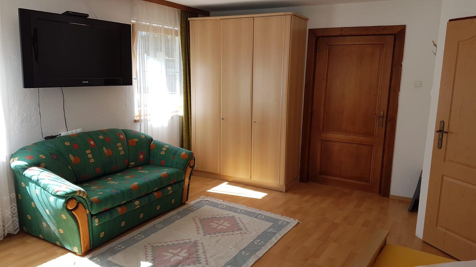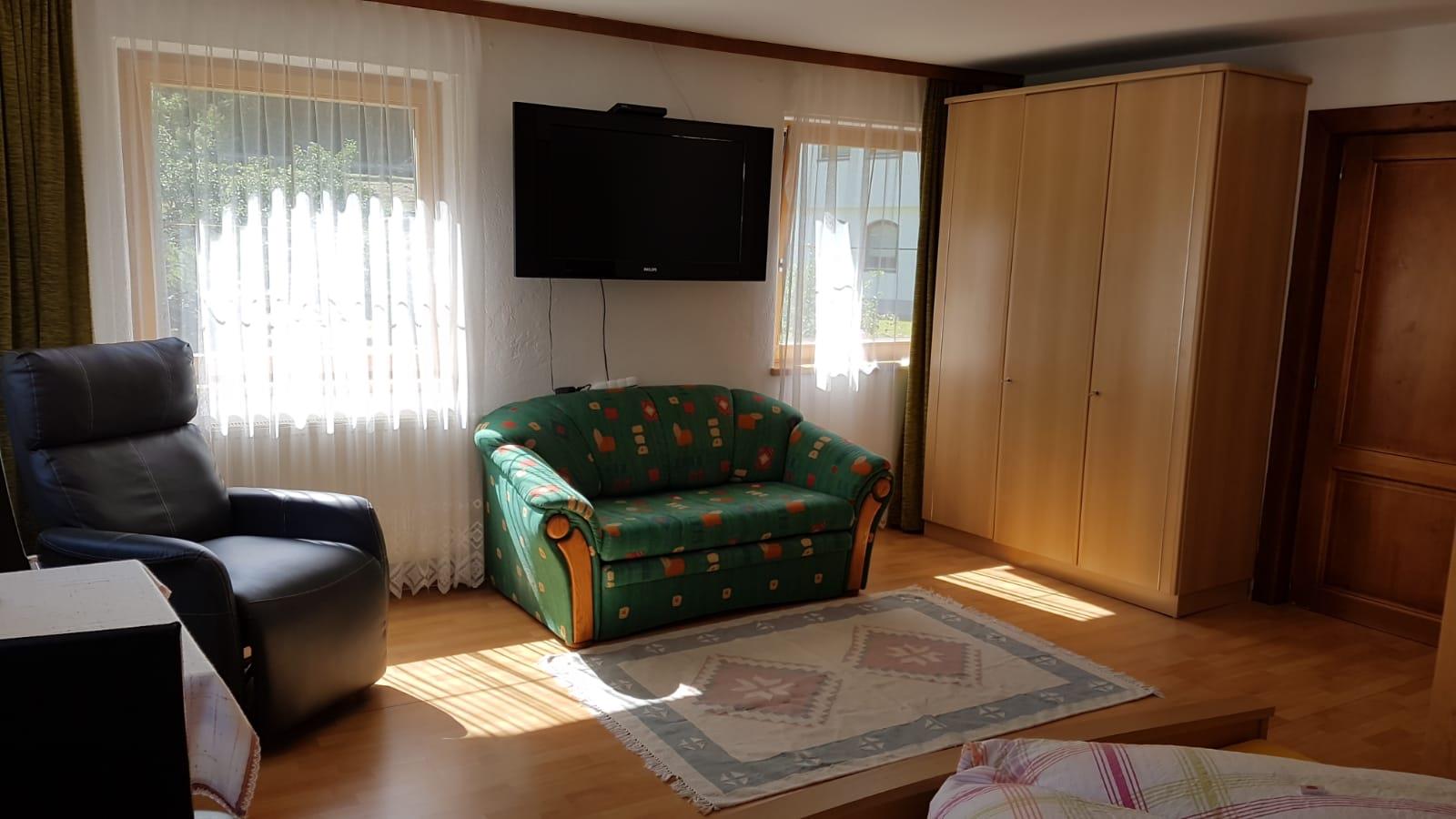 Das ca. 25 m2 große und helle Zimmer besteht aus: 1 extra großem Doppelbett und Dusche/WC inkl. Handtücher, Haartrockner, 1 Flachbildschirm-Fernseher (105 cm), ein ausziehbares Sofa (Schlafmöglichkeit für 3. Person), genießen Sie einen traumhaften Ausblick auf die umliegende Bergwelt!