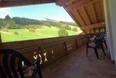 mit Ausblick Richtung Wald und Wiese und Bergblick zum Hausberg dem Einstein.