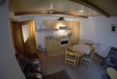 In der Wohnküche befindet sich eine gemütliche Polsterecke mit Sessel und Flachbildfernseher mit SAT-TV.