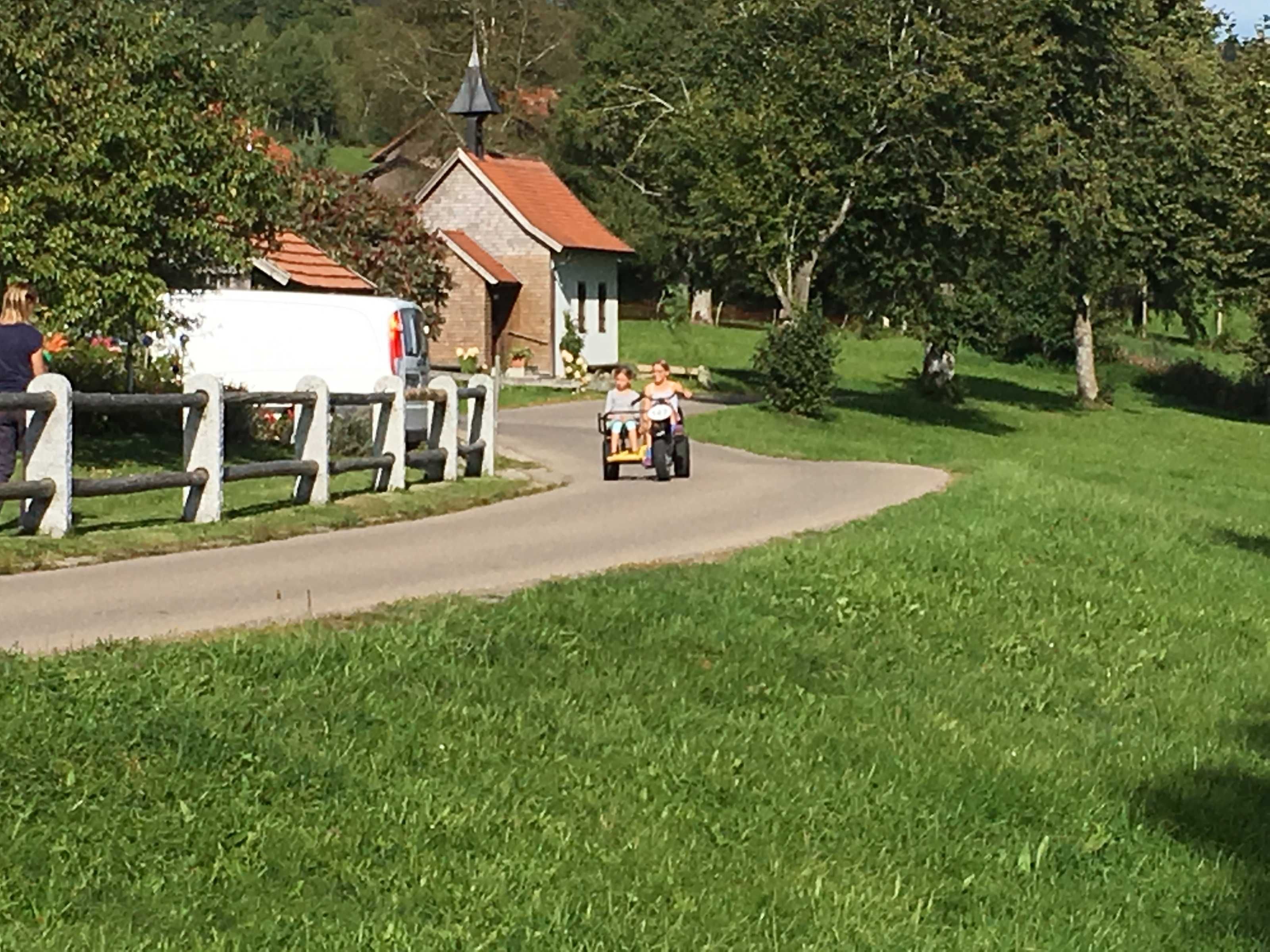 Schlitten, Schneeschuhe und ein großes Kettcar sind auf Anfrage gegen eine kleine Gebühr bei uns auszuleihen. Auch Fahrräder können sie bei uns gegen Gebühr ausleihen: zwei neue Trekking-E-Bikes für je 25€ pro Tag, Zwei ältere Mountainbikes und zwei Kinder-Mountainbikes für je 15€ pro Tag
