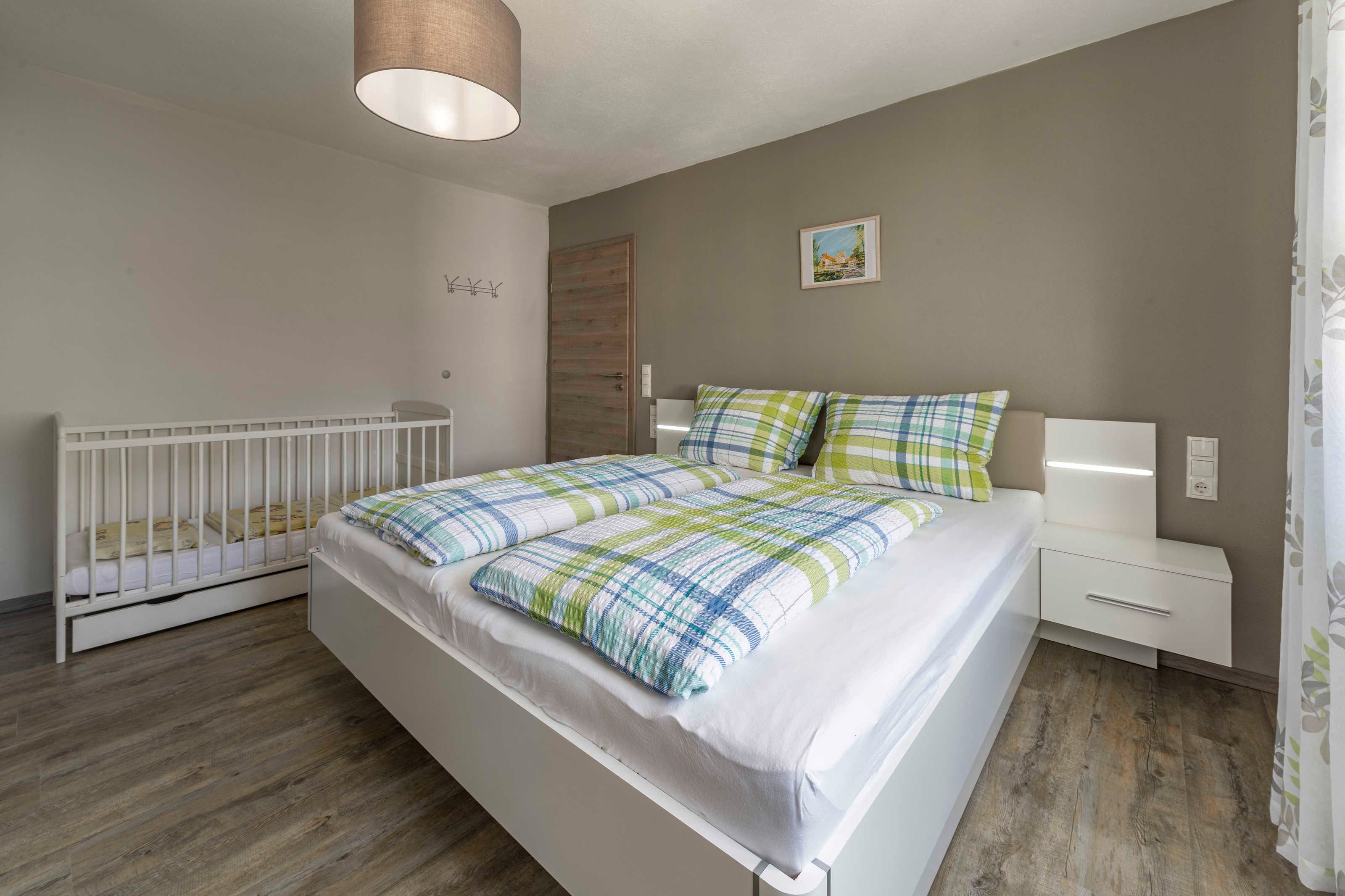 Für unsere kleinen Gäste steht ein Gitterbett (bis 5 Jahre) bereit sowie auf Wunsch ein weiteres Reisebett (bis 3 Jahre) und ein Hochstuhl zur Verfügung.