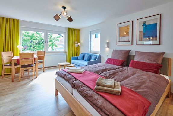 Wir bieten Ihnen ein helles, sonniges, sehr ruhiges Apartment (ca. 32 qm) im 1. OG eines kleinen Hauses. Der DTV hat unser Apartment mit 4 Sternen bewertet.