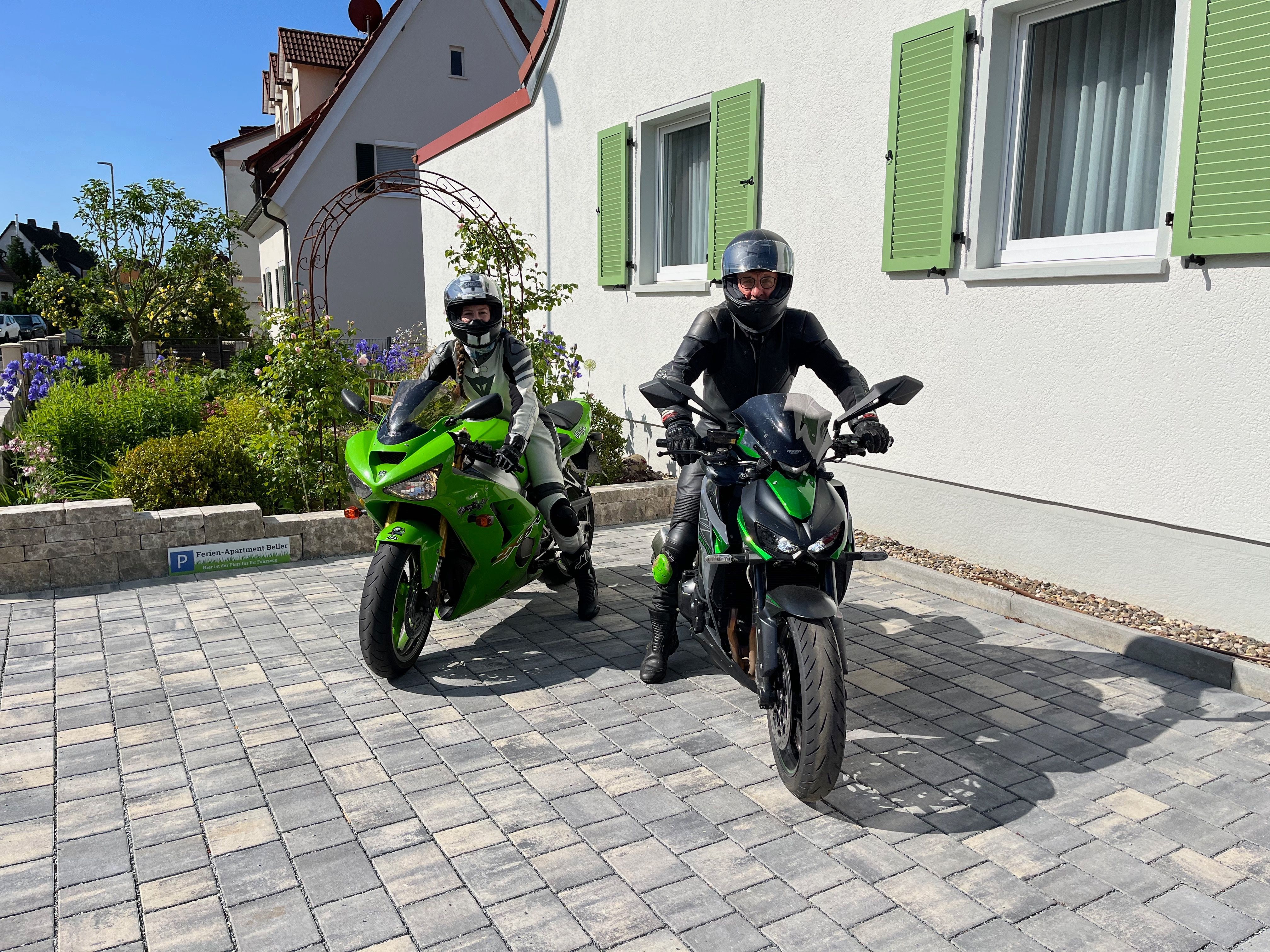Wenn Sie mit dem Auto oder dem Motorrad anreisen, können Sie Ihr Fahrzeug kostenfrei auf unserem Grundstück parken. Ihre Fahrräder stehen sicher und trocken in einem kleinen, abschließbaren Gartenhaus neben dem Freisitz.