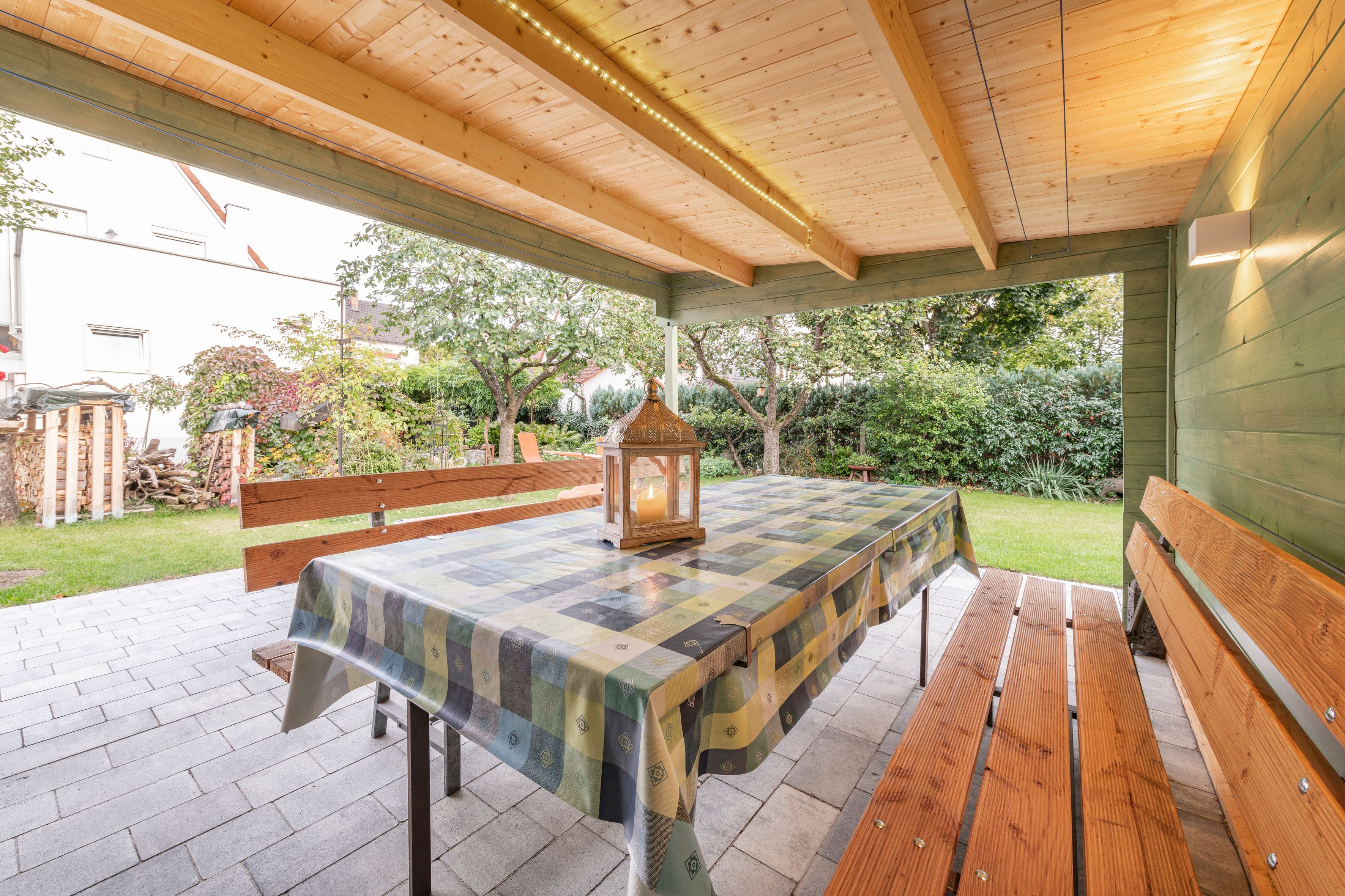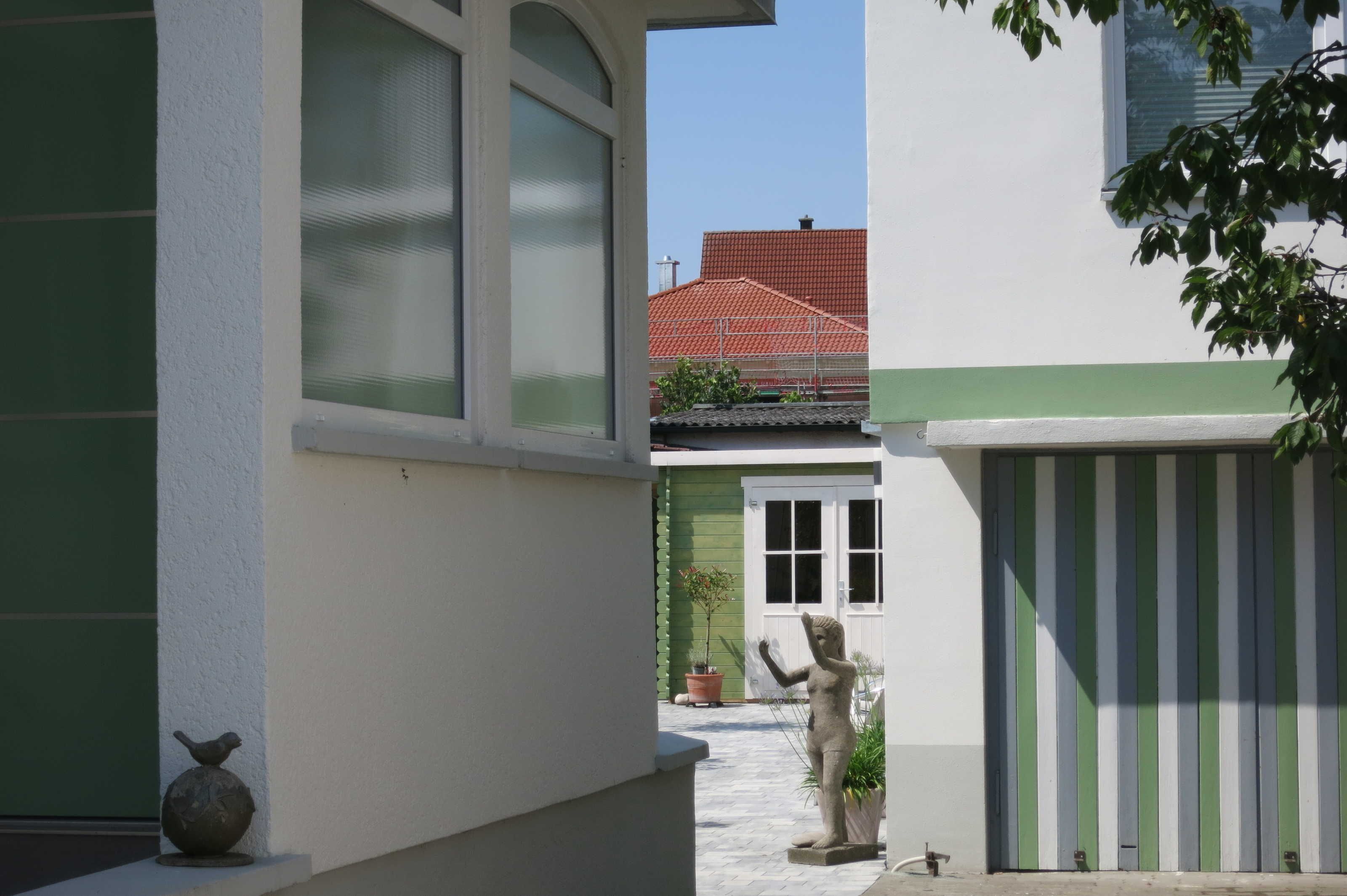 Die Kernsanierung haben wir Anfang 2020 abgeschlossen und die Wohnung sehr hochwertig eingerichtet. Heute steht das Häuschen da wie neu, außen frisch verputzt und gestrichen, mit neuem Dach, neuer Elektrik, neuer Heizung (Gastherme) und Wasserinstallation. Unser Strom kommt zu einem Großteil von unserer neuen PV Anlage auf dem Haupthaus, ansonsten beziehen wir Biostrom von Green-Planet Energy. Weitgehend natürliche Baustoffe und Allergiker-freundliche Ausstattung sorgen für ein sehr angenehmes Raumklima.