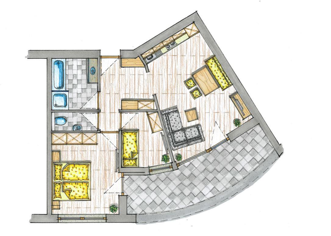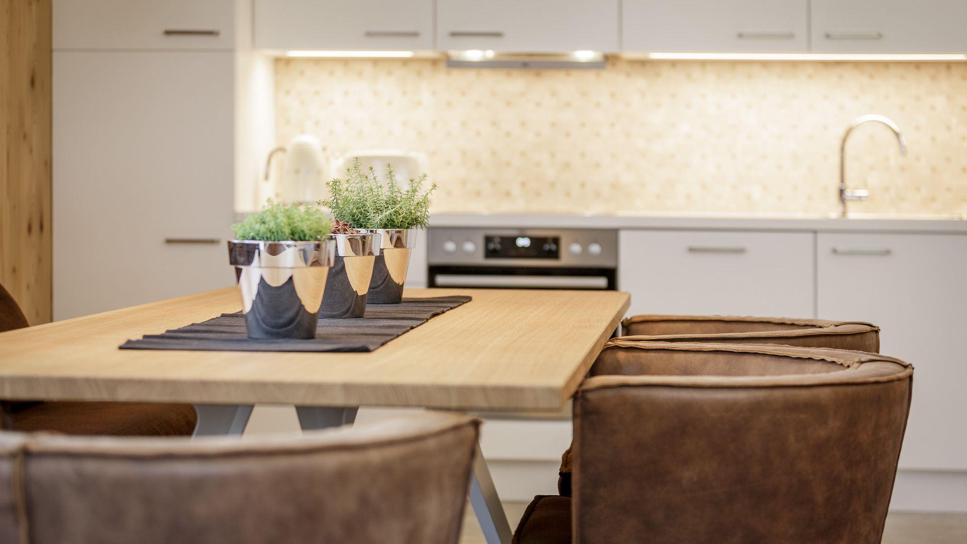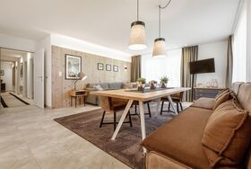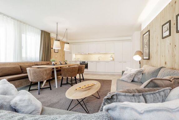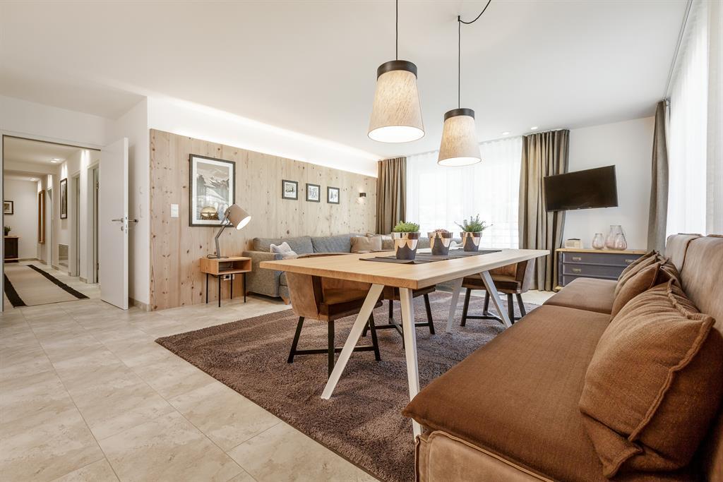 Unser Designer-Apartment Top 2 mit ca. 100 m² Wohnfläche besteht aus: 2 Doppelzimmer mit Sat-TV; 1 seperates Kinderzimmer mit Doppelbett und Sat-TV; großen Wohnraum mit Doppel-Auszieh-Couch und TV; 2 Bäder mit Dusche/Badewanne und WC; 1 seperates WC; eine voll ausgestattete Wohnküche (Geschirrspüler, Mikrowelle, Ceranfeld mit Backofen usw.) mit grosszügiger Sitz- und Essecke, sowie Zugang zur ca. 40 m² großen Terrasse.