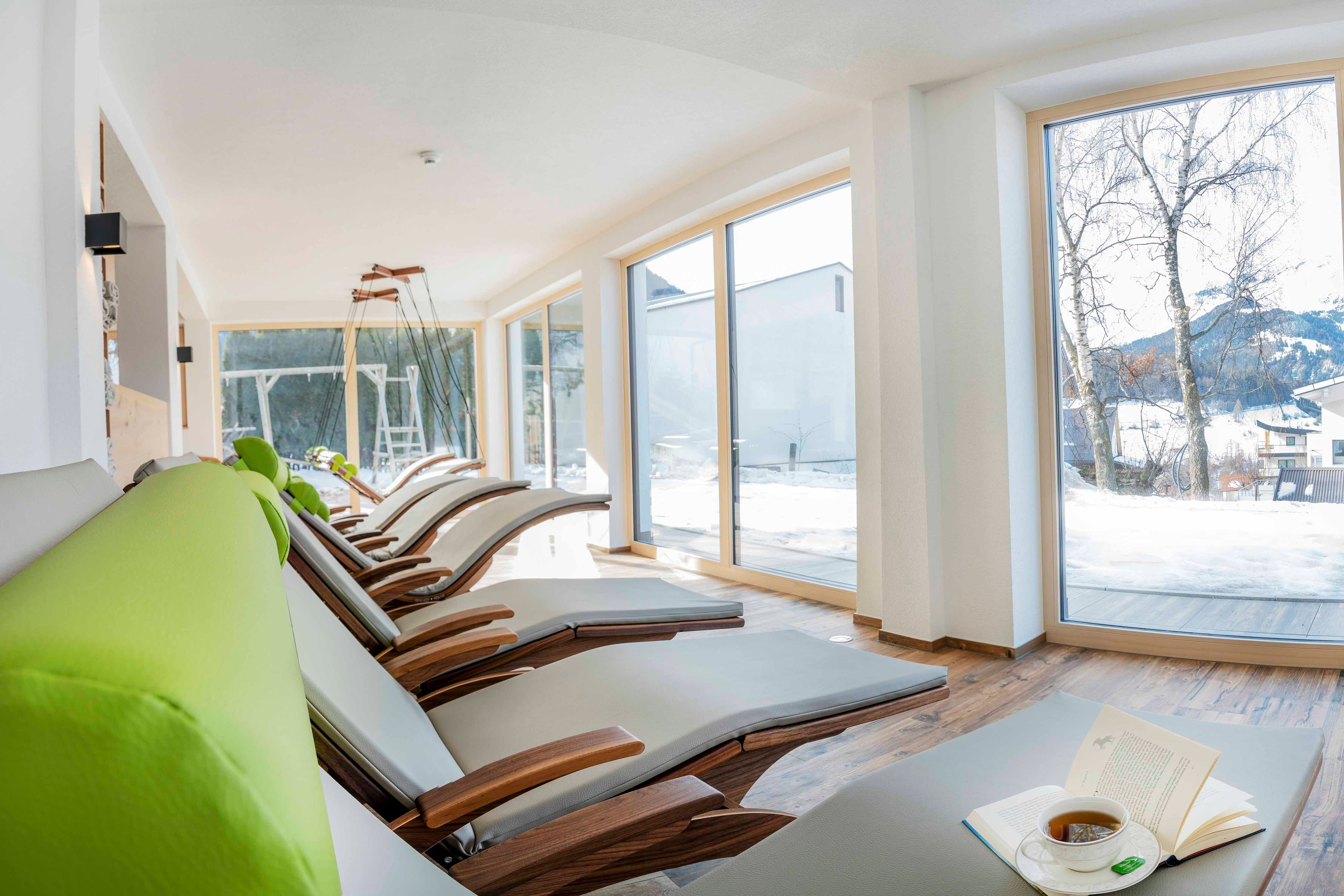Ein feiner Wohlfühlbereich mit Sauna, Infrarotkabine, Teebar, Panoramaruheraum mit Entspannungsliegen und Relax-Liegwiese für wohltuende Momente.