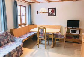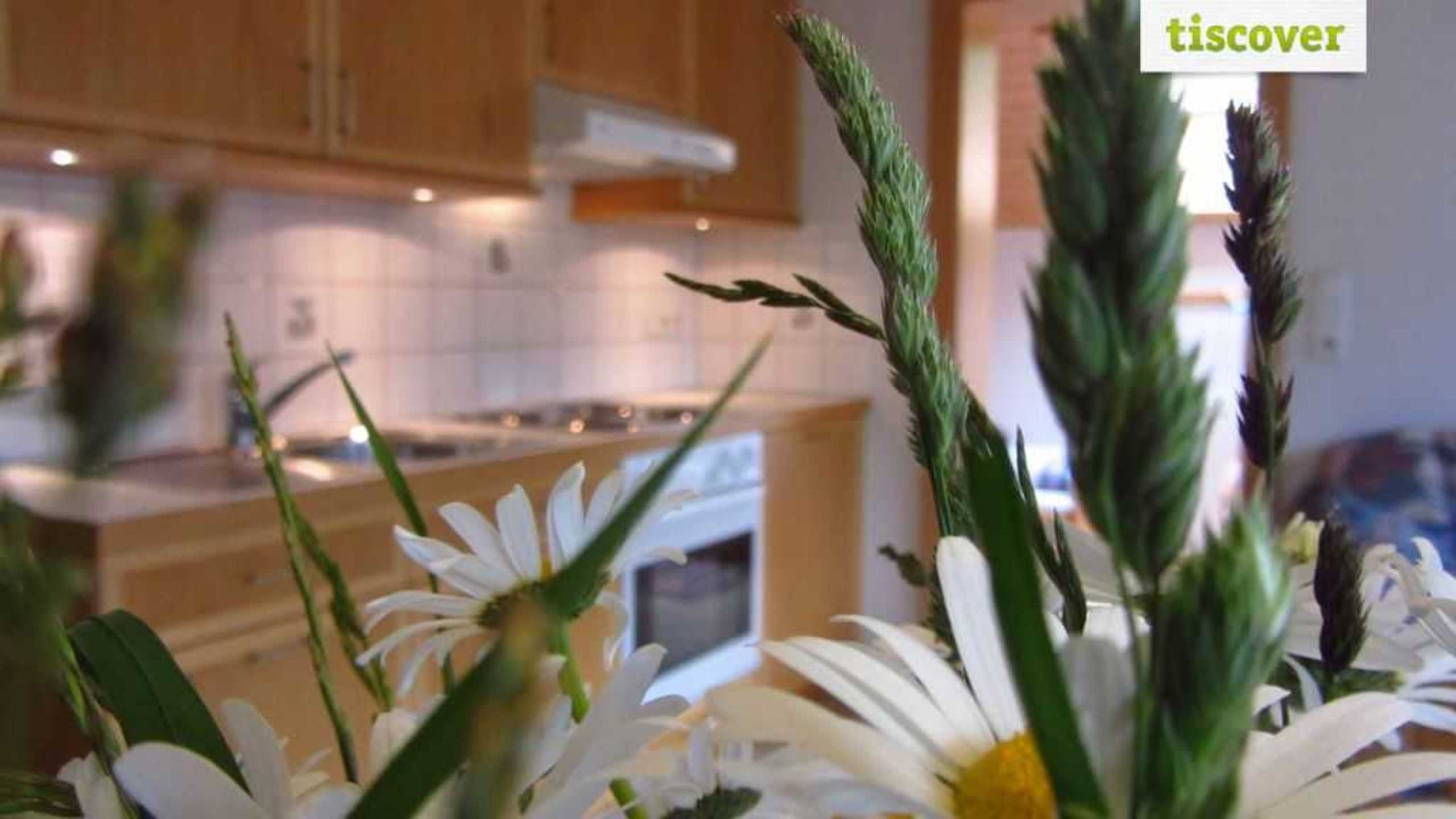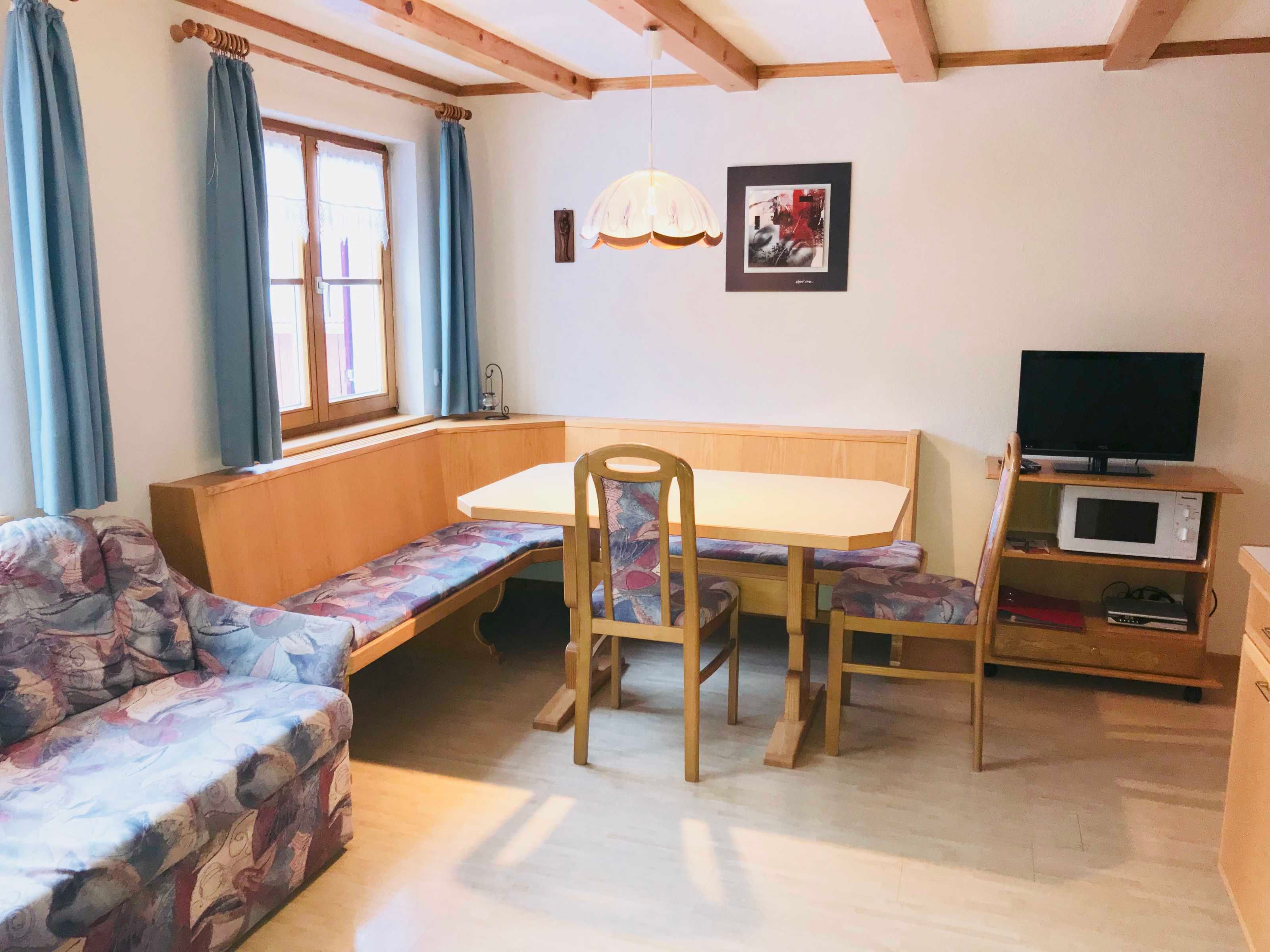 Die Wohnküche aus Holz ist komplett eingerichtet. Die gemütliche ausziehbare Polstersitzecke lädt zum Erholen und Entspannen ein. Ein TV-Gerät mit Sat-Empfang steht natürlich auch zu Ihrer Verfügung.