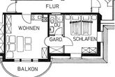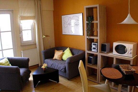• 1 Wohnraum mit Kleinküche und Esstisch
