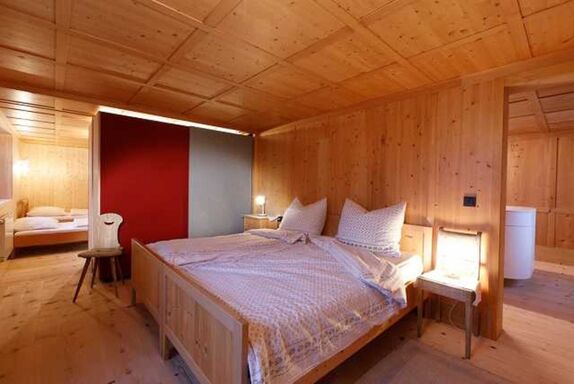 Die mit originalem, historischem Kassettentäfer ausgestattete erdgeschossige Ferienwohnung wurde 2019 in hoher handwerklicher Qualität restauriert und umgebaut. Ziel des Umbaus war es, die historisch gewachsene Baustruktur zu respektieren, und im Hinblick auf zeitgemäße Anforderungen weiter zu entwickeln und neu zu interpretieren. Diese Veränderung ist trefflich gelungen. Viel Licht und Leichtigkeit machen daraus ein ganz besonderes Wohn- und Wohlfühlerlebnis. Die Atmosphäre der Wohnung wird bestimmt vom Dialog historischer und neuer Elemente bzw. Raumauffassungen. Es ist eine besondere Ferienwohnung, in einem sensibel und qualitativ hochwertig restaurierten traditionellen Wälderhaus. Mit allen Annehmlichkeiten und Komfort, die man für einen sorglosen Urlaub benötigt. Großzügige schwellenlose Räumlichkeiten, stilvoll eingerichtet und ausgestattet mit traditionellen und modernen Elementen, mit viel Platz für die ganze Familie oder für Freunde. Ein Ort zum Wohlfühlen, zum zu Hause fühlen, zum Entspannen und Genießen.