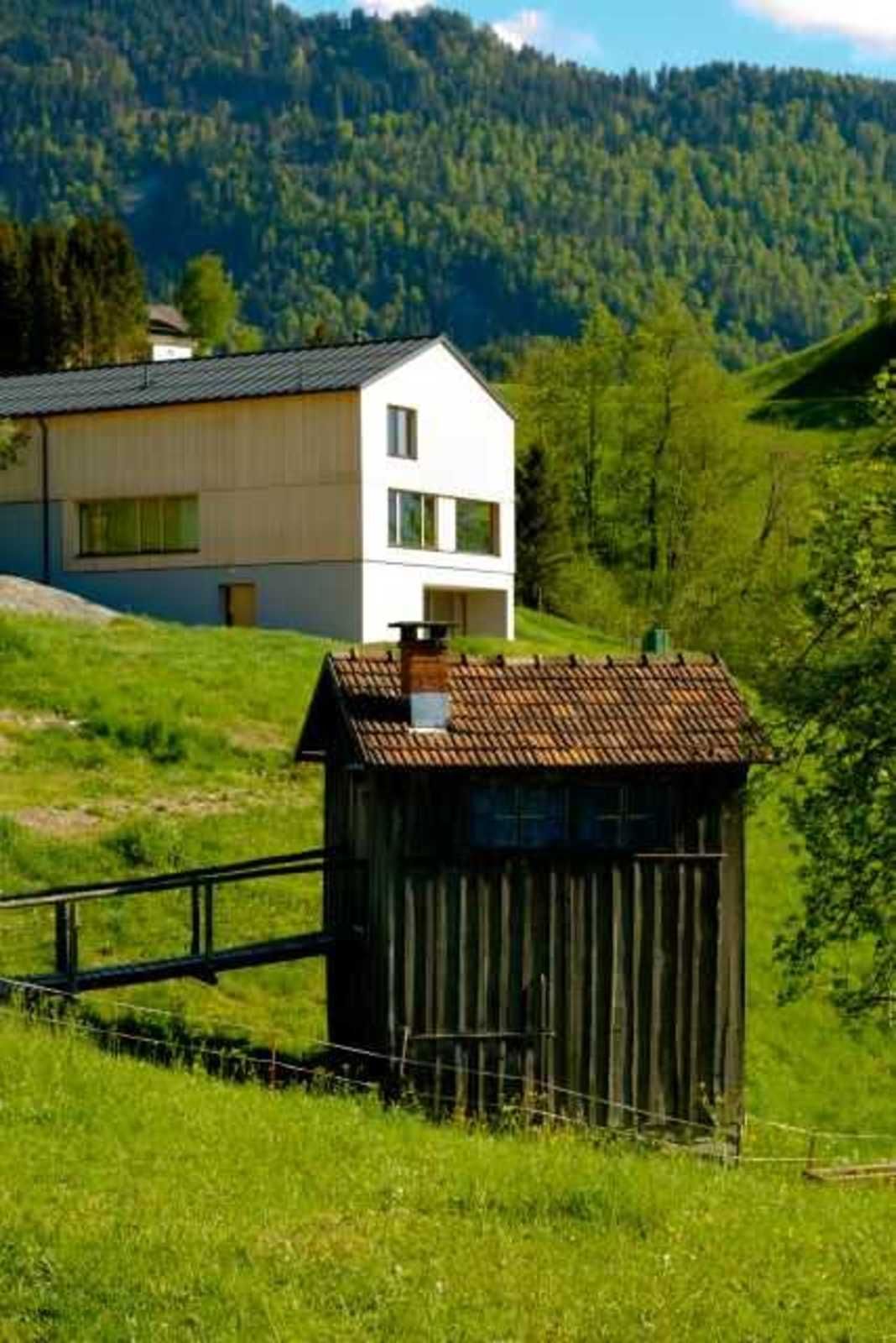 Vorraum in einem Bregenzerwälder-Haus. Das Herzstück ist eine mit
