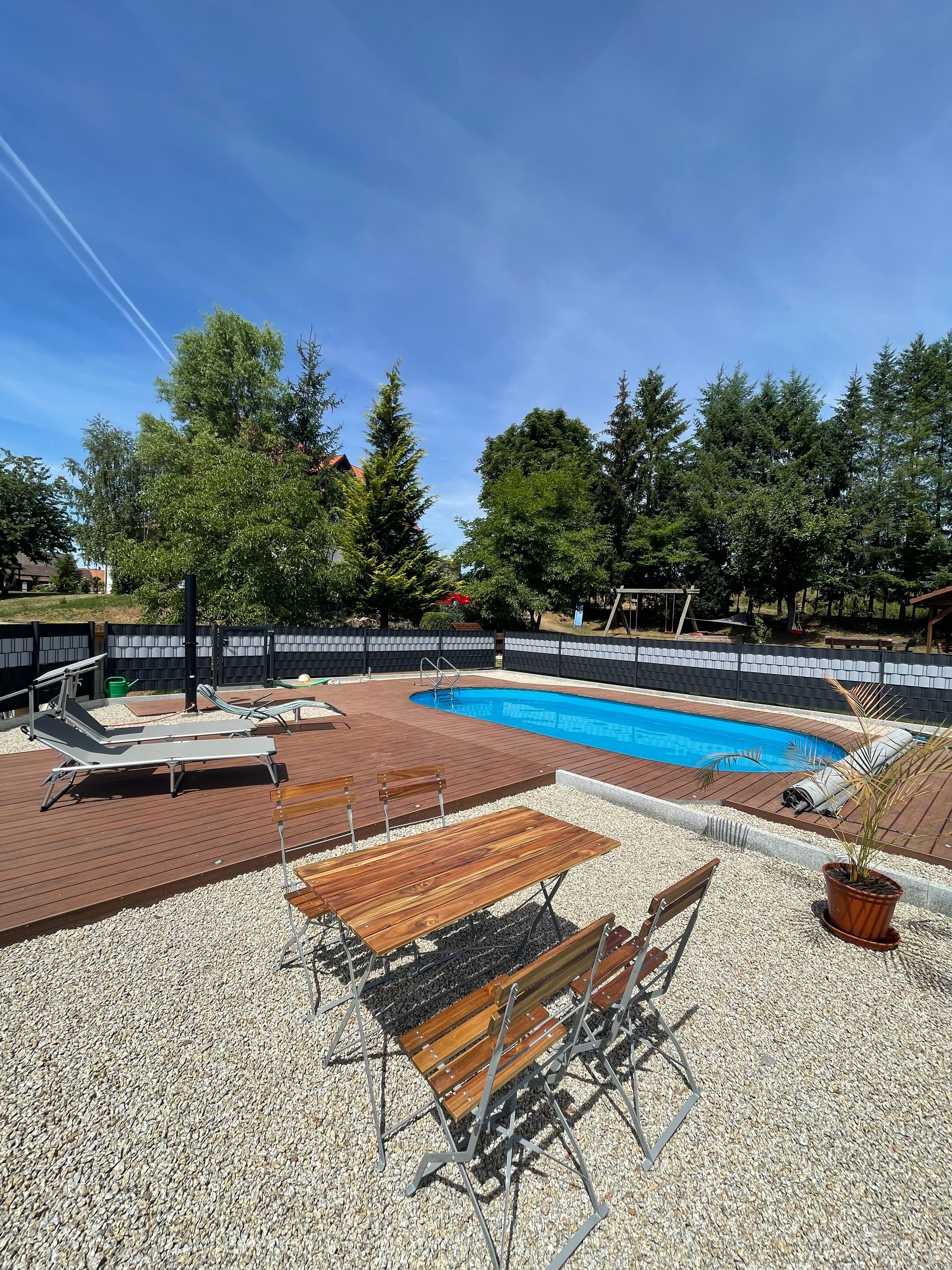 Neu ab der Sommersaison 2022: ein beheizter Swimmingpool (4 m x 8 m) mit einer Wassertiefe von 1,40 m und angrenzender Liegefläch lädt an heißen Sommertagen zum Abkühlen, Toben und Relaxen ein!
