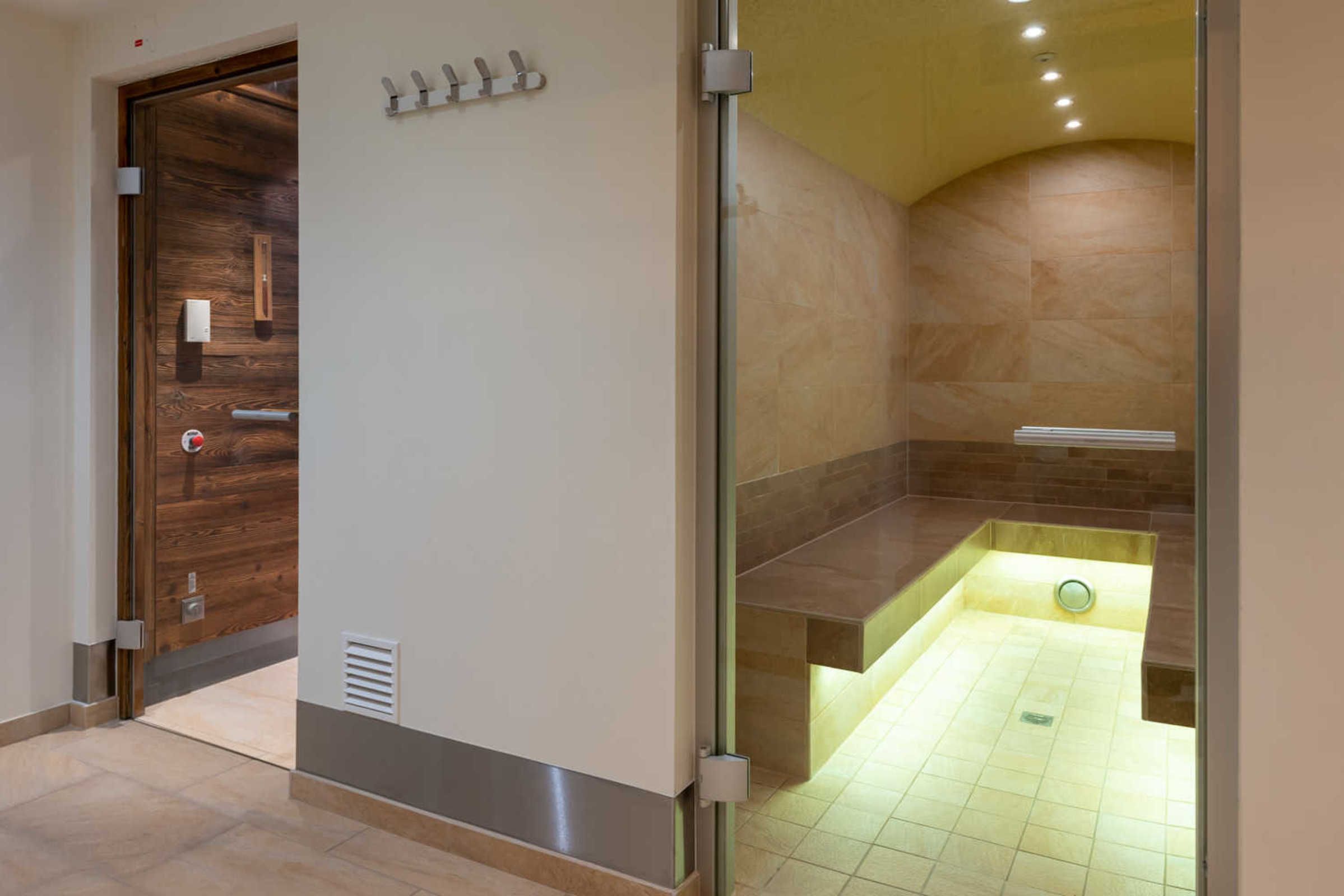 In unserer Finnischen Sauna mit Ausblick auf die winterliche Natur wird jeder Saunagang zum Erlebnis. Das Bergkräuter-Dampfbad verwöhnt Körper und Sinne – ideal nach einem aktiven Tag in den Bergen.