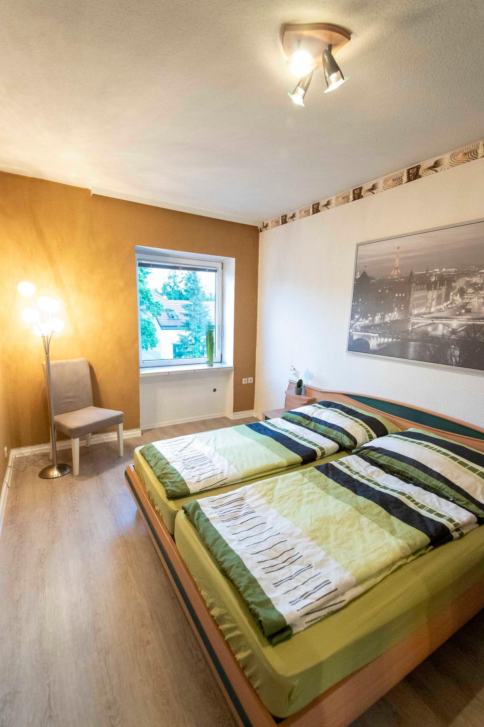 Im Schlafzimmer befindet sich ein großes Doppelbett (1,80 x 2 m) und ein großer Spiegelschrank. Bettwäsche ist vorhanden.