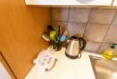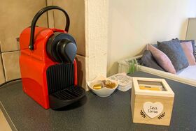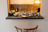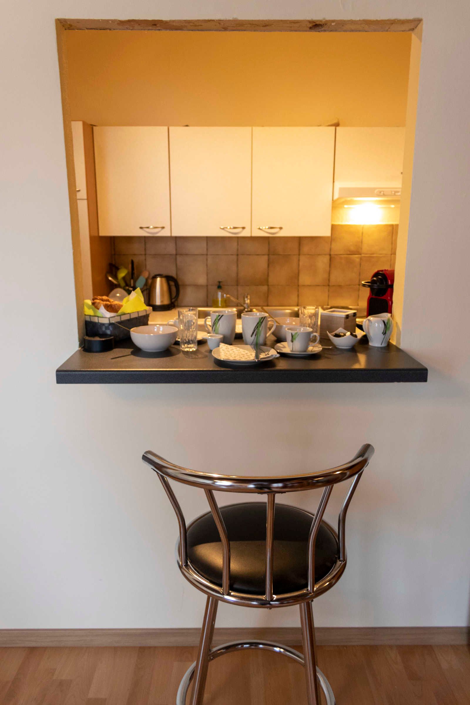 Die Küche ist komplett ausgestattet mit Herd, Backofen, Kühlschrank, Mikrowelle, Nespresso-Kaffeemaschine, Wasserkocher, Eierkocher und natürlich sämtlichem Geschirr, Weingläsern, Töpfen und Pfannen.