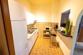 Die Wohnung besteht aus einem großen Zimmer, welches einen Schlafbereich und einen Essbereich hat. Weiters gibt es ein Bad mit Dusche und WC und einen Vorraum, der in eine Küche übergeht.