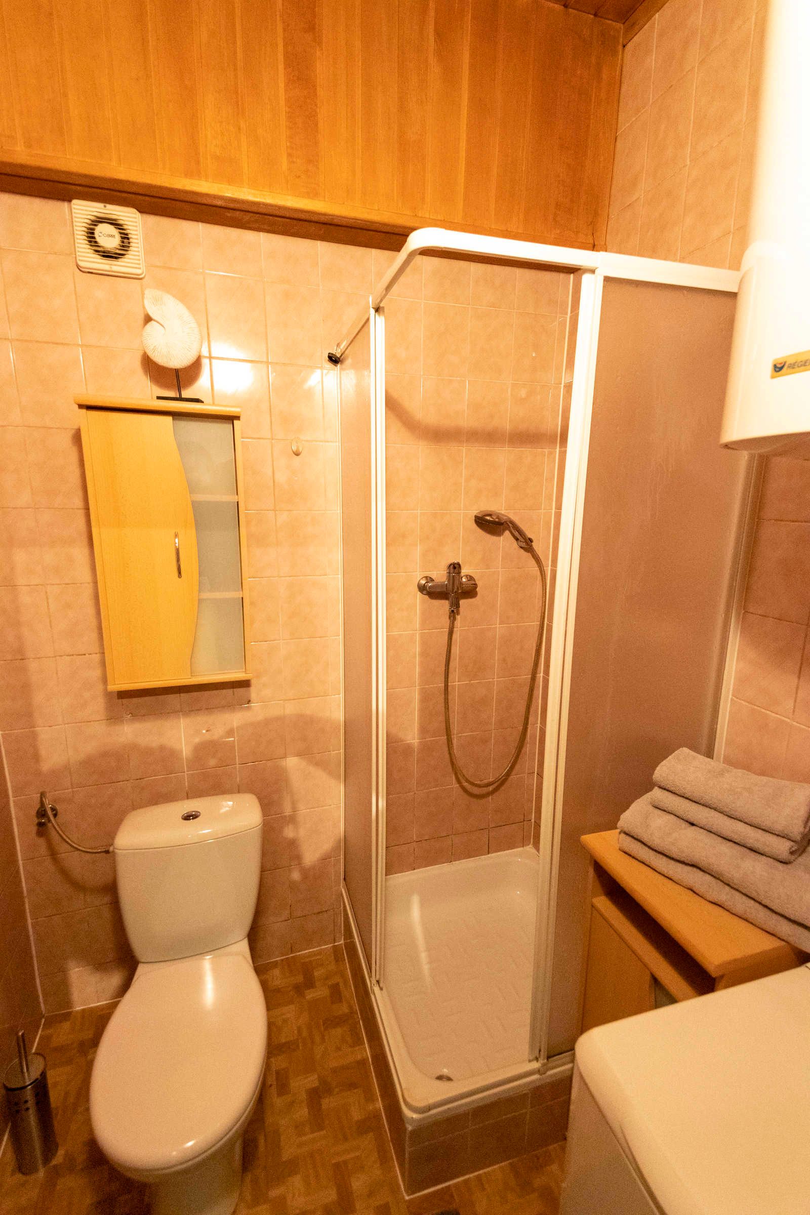 Im Bad mit Dusche werden Handtücher, Shampoo und Duschgel zur Verfügung gestellt. Weiters ist hier auch eine Waschmaschine vorhanden.