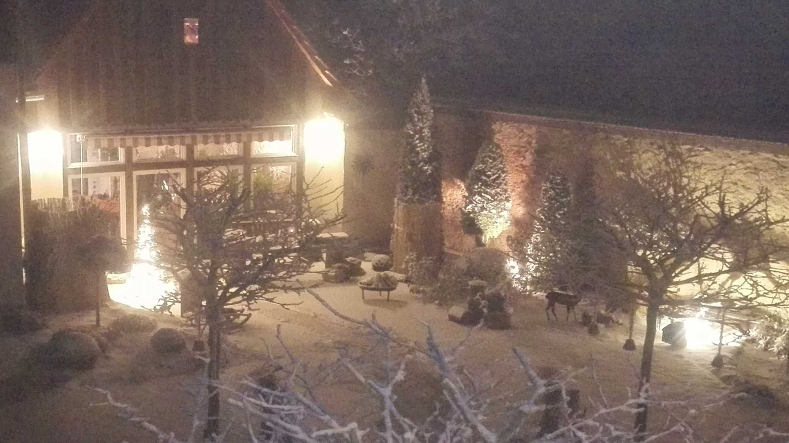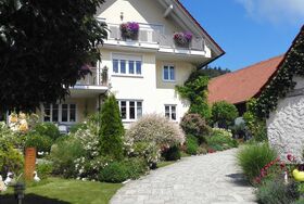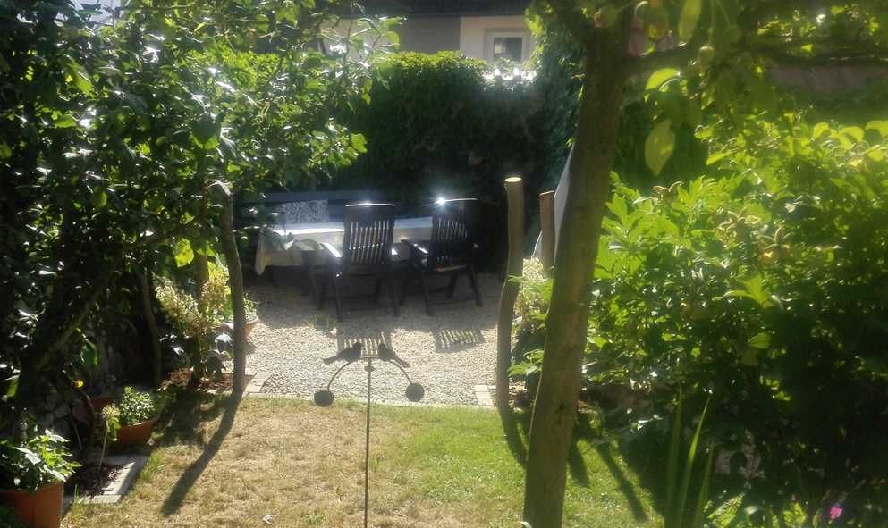 Unser Haus liegt auf einem weitläufigen Anwesen mit liebevoll gestalteten und gepflegten Außenanlagen und Innenhof, wo sich ein kostenloser Stellplatz für Ihr Auto und ein abschließbarer Raum für Ihre Fahrräder befindet.