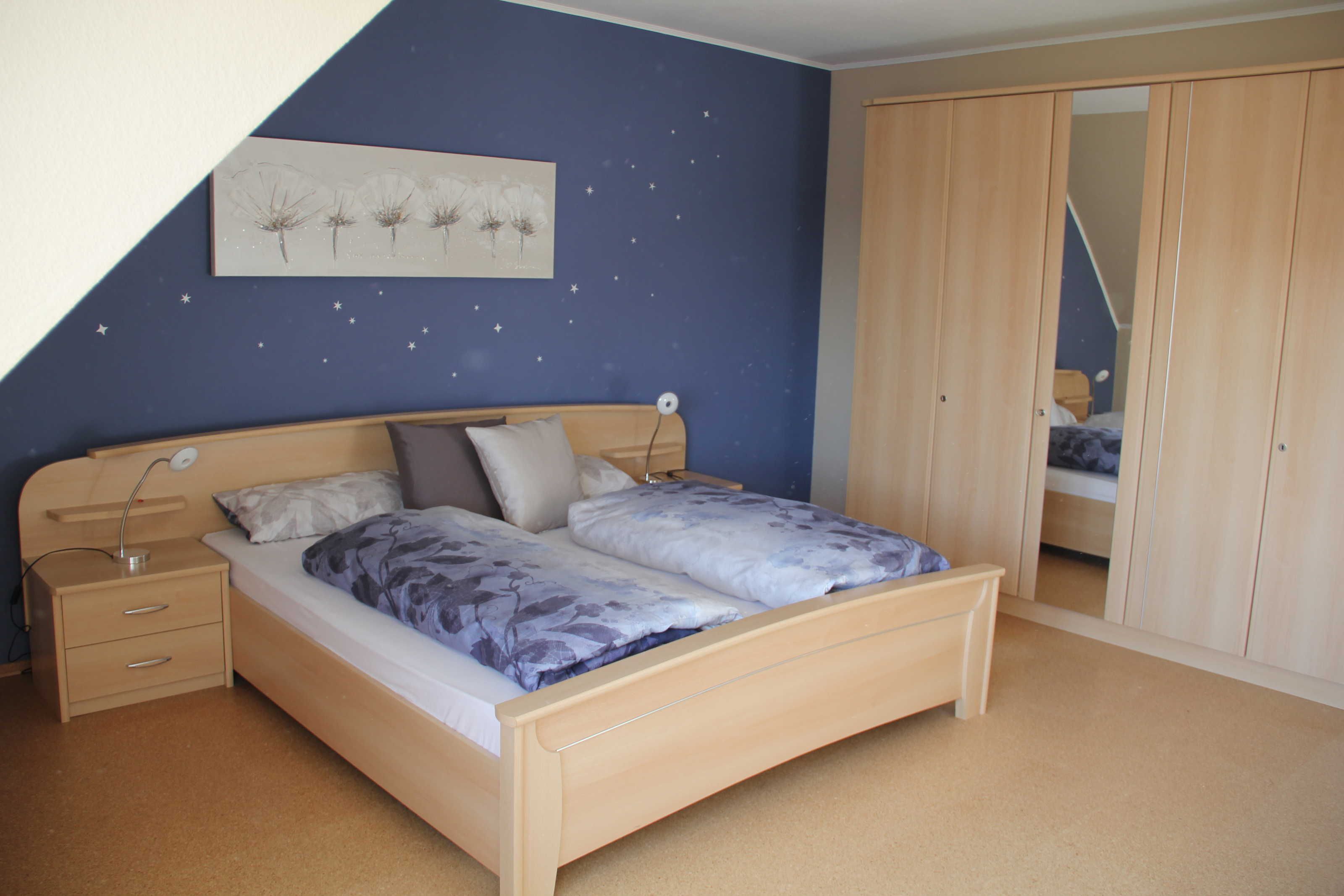 Schlafzimmer 1: Doppelbett, großer Schrank mit Spiegel, Couch, Wäschediener, mobiles Babybett auf Anfrage möglich