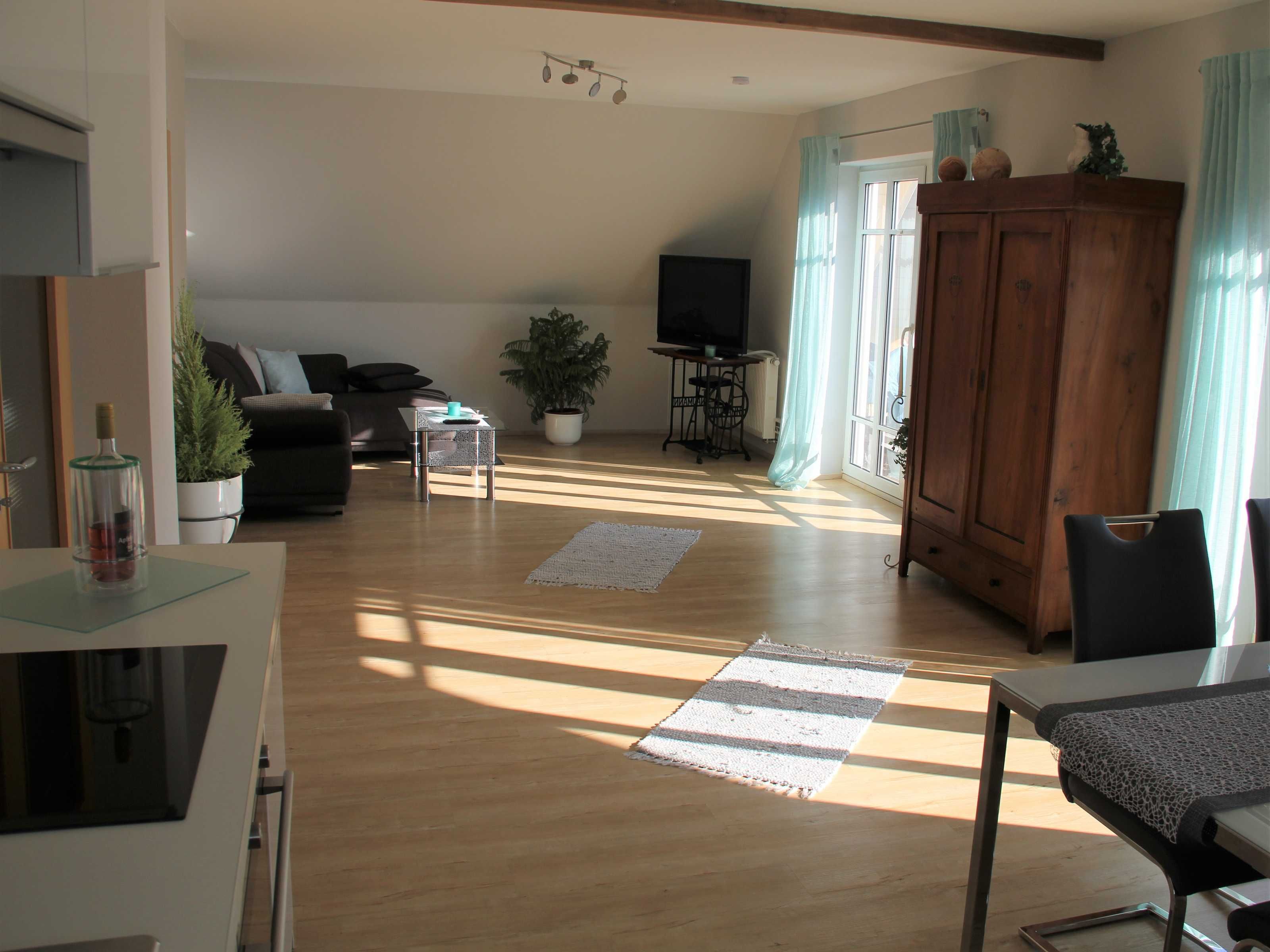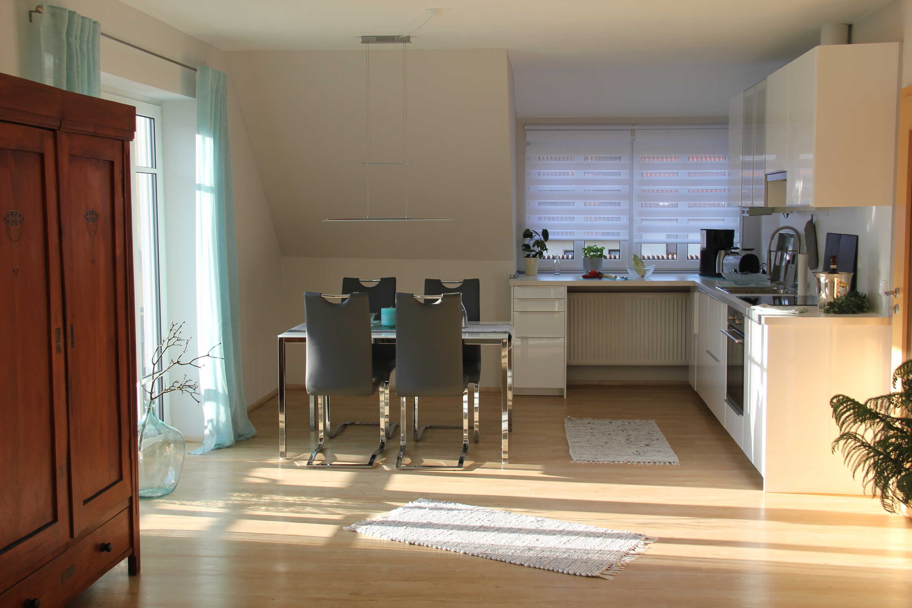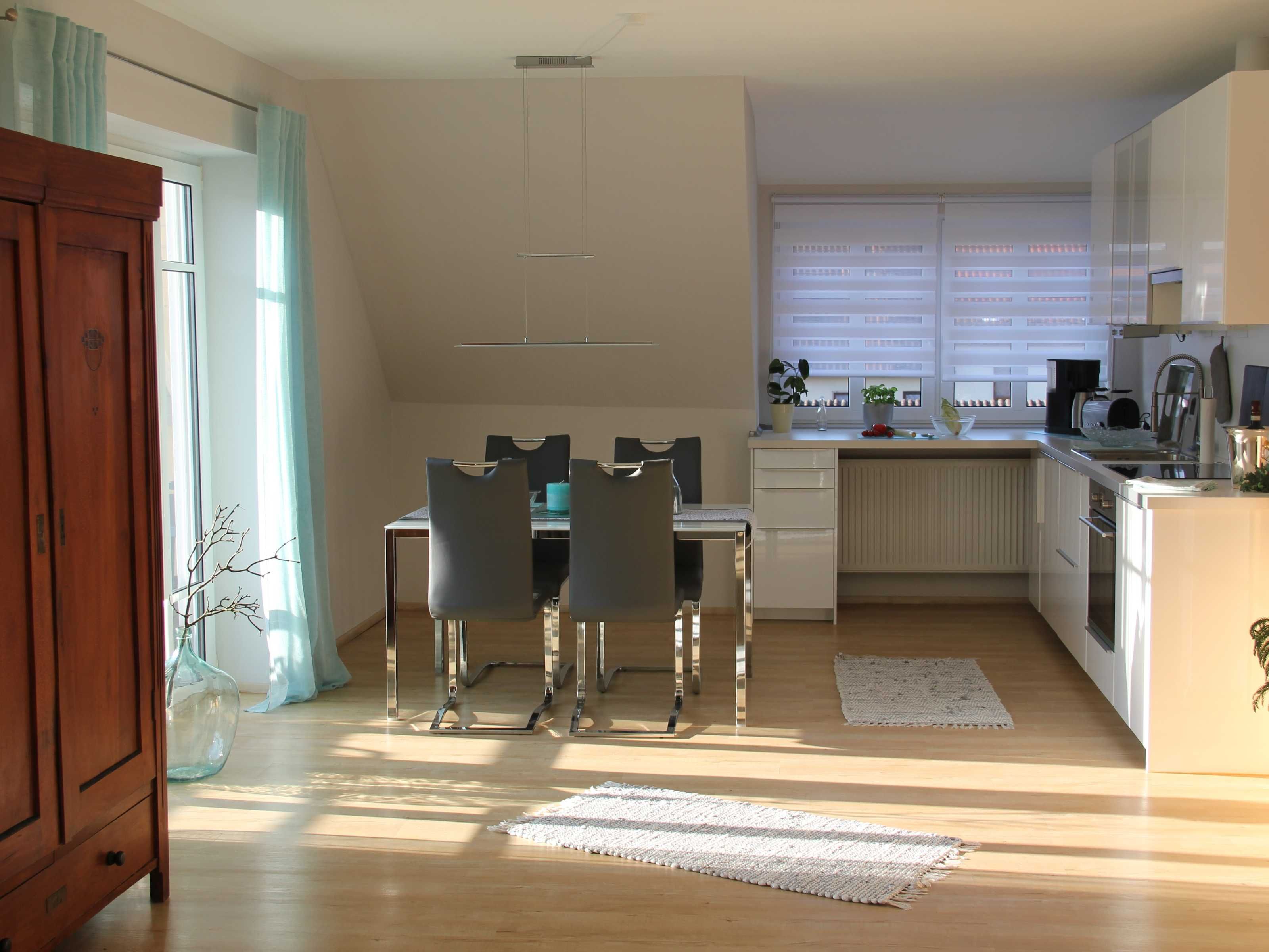 Offener Wohn-, Ess- und Kochbereich mit 2 Zugängen zum Südost-Balkon