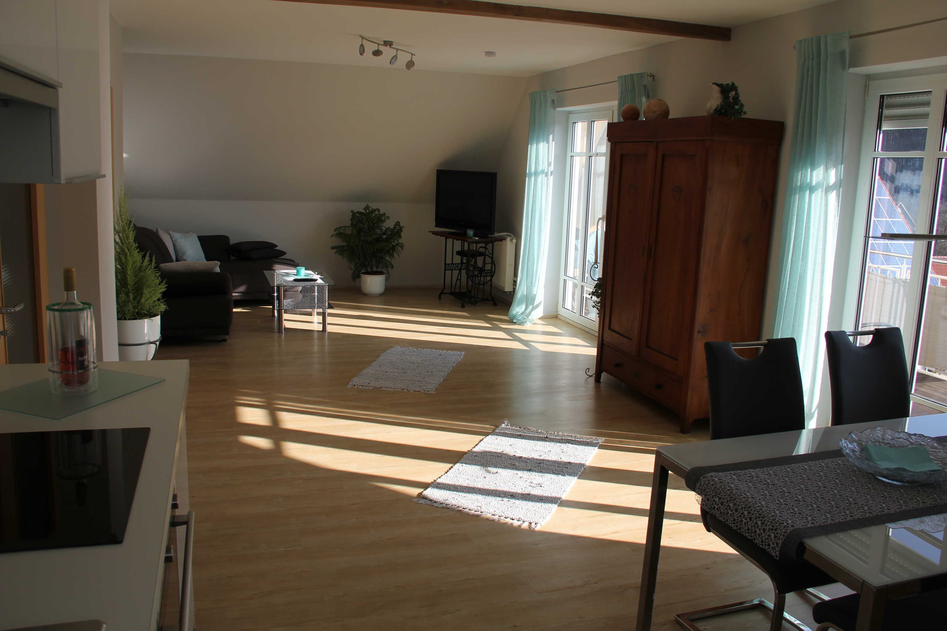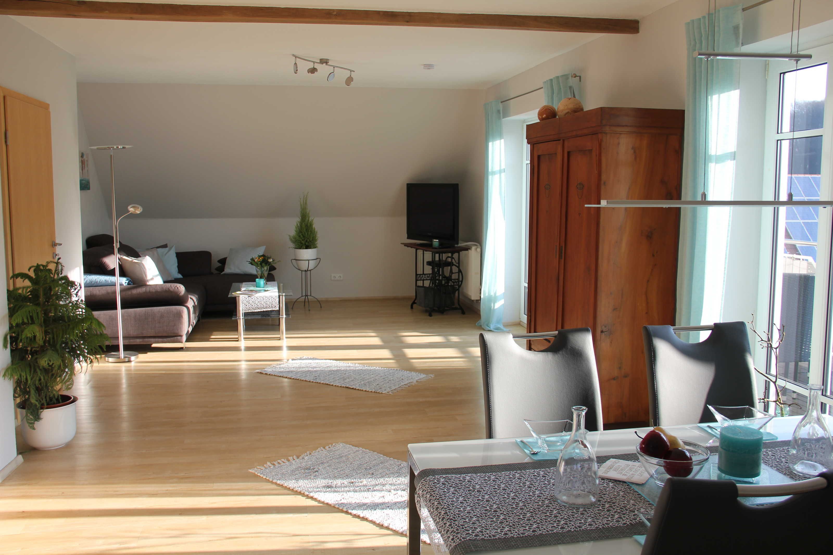Im Herzen der Fränkischen Schweiz in ruhiger Waldrandlage erwartet Sie ein gepflegtes Zuhause für Ihren Urlaub. Mit einer lichtdurchfluteten, großzügigen und geschmackvoll eingerichteten 3-Zimmer-Ferienwohnung im Dachgeschoss bieten wir bis zu 4 Erwachsenen und 1 Kleinkind viel Raum zum Entspannen und Wohlfühlen in ungestörter Privatsphäre auf einer separaten Etage. Der große überdachte Süd-Ost-Balkon lädt zum gemütlichen Frühstücken in sonniger Atmosphäre oder zum entspannten Ausklingen des Tages ein.