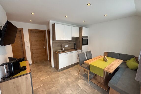 Unser modern eingerichtetes Apartment verfügt über 2 Schlafzimmer, einem Badezimmer mit Dusche, separatem WC, einer Wohnküche mit Essecke und einer Terrasse mit herrlichem Ausblick auf die Nauderer Bergwelt.