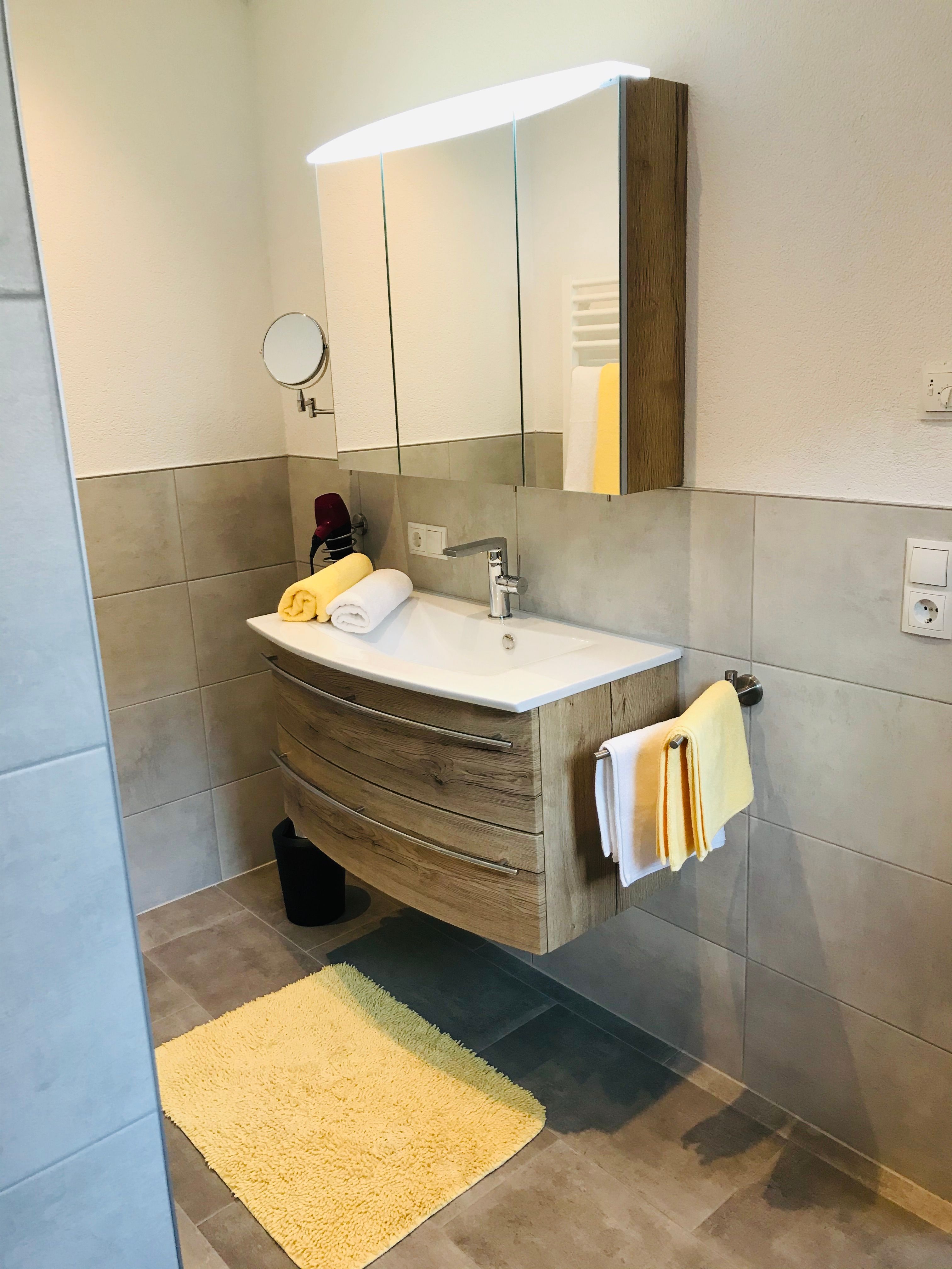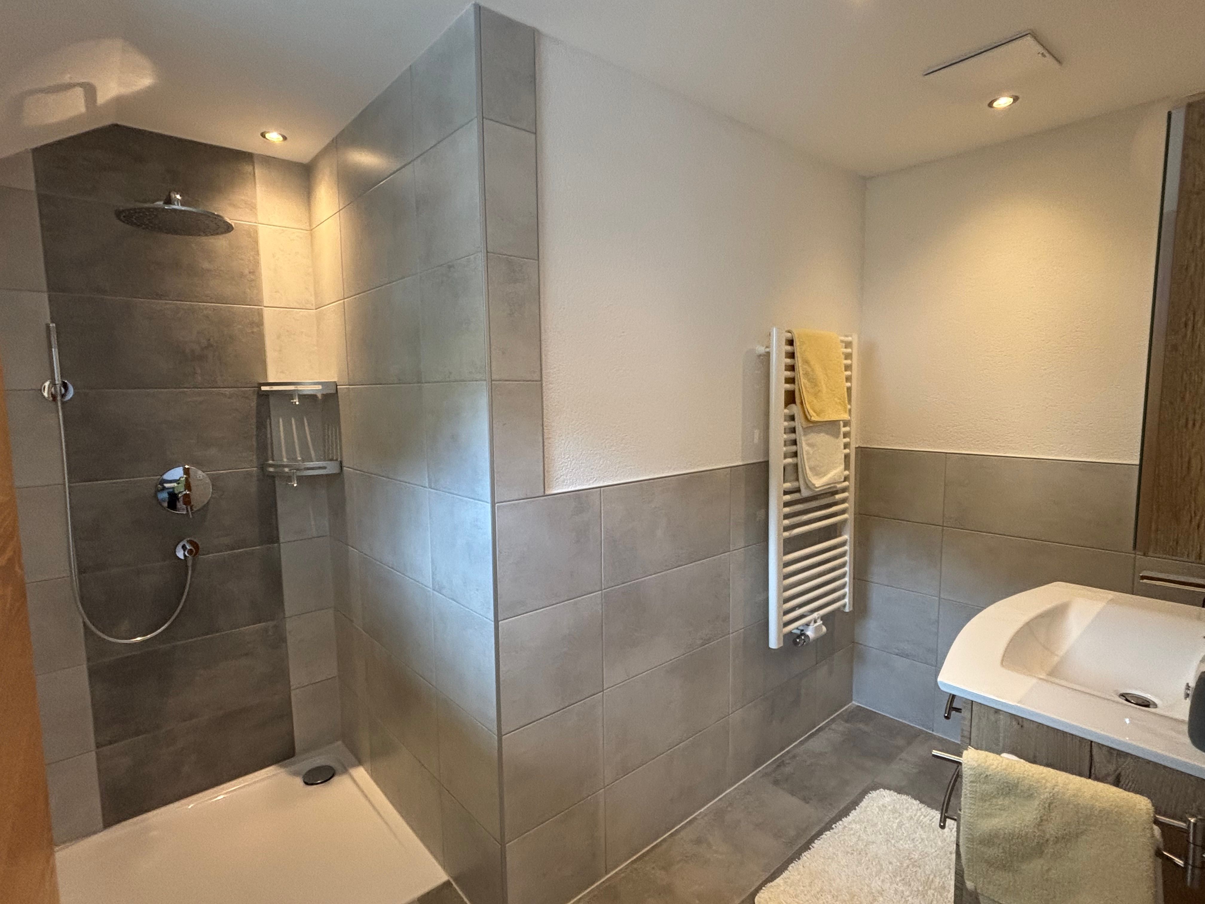 • Badezimmer mit begehbarer Dusche, Kosmetikspiegel, Fön