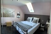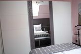 Das gemütliche Schlafzimmer ist mit einem Bett (180 x 200cm), einem großen Kleiderschrank und diversen Ablagemöglichkeiten möbliert. Eine vollständige Verdunkelung ist möglich und erfolgt über einen elektrischen Rollo.