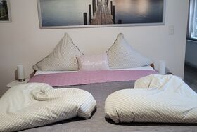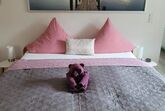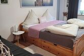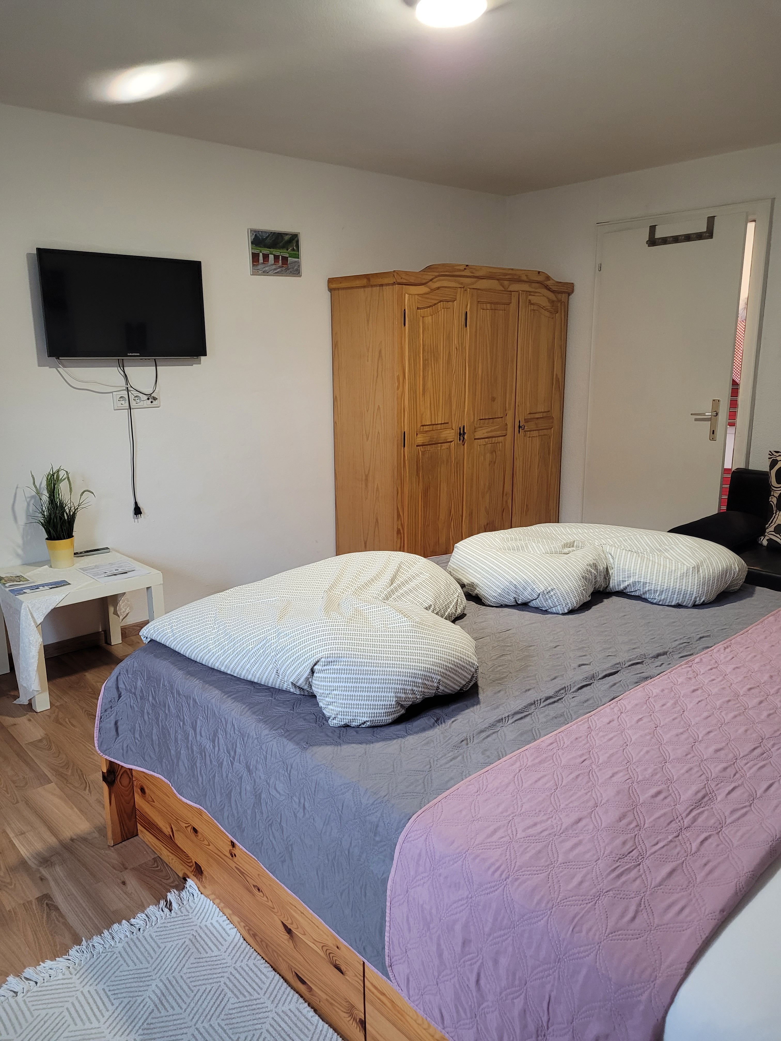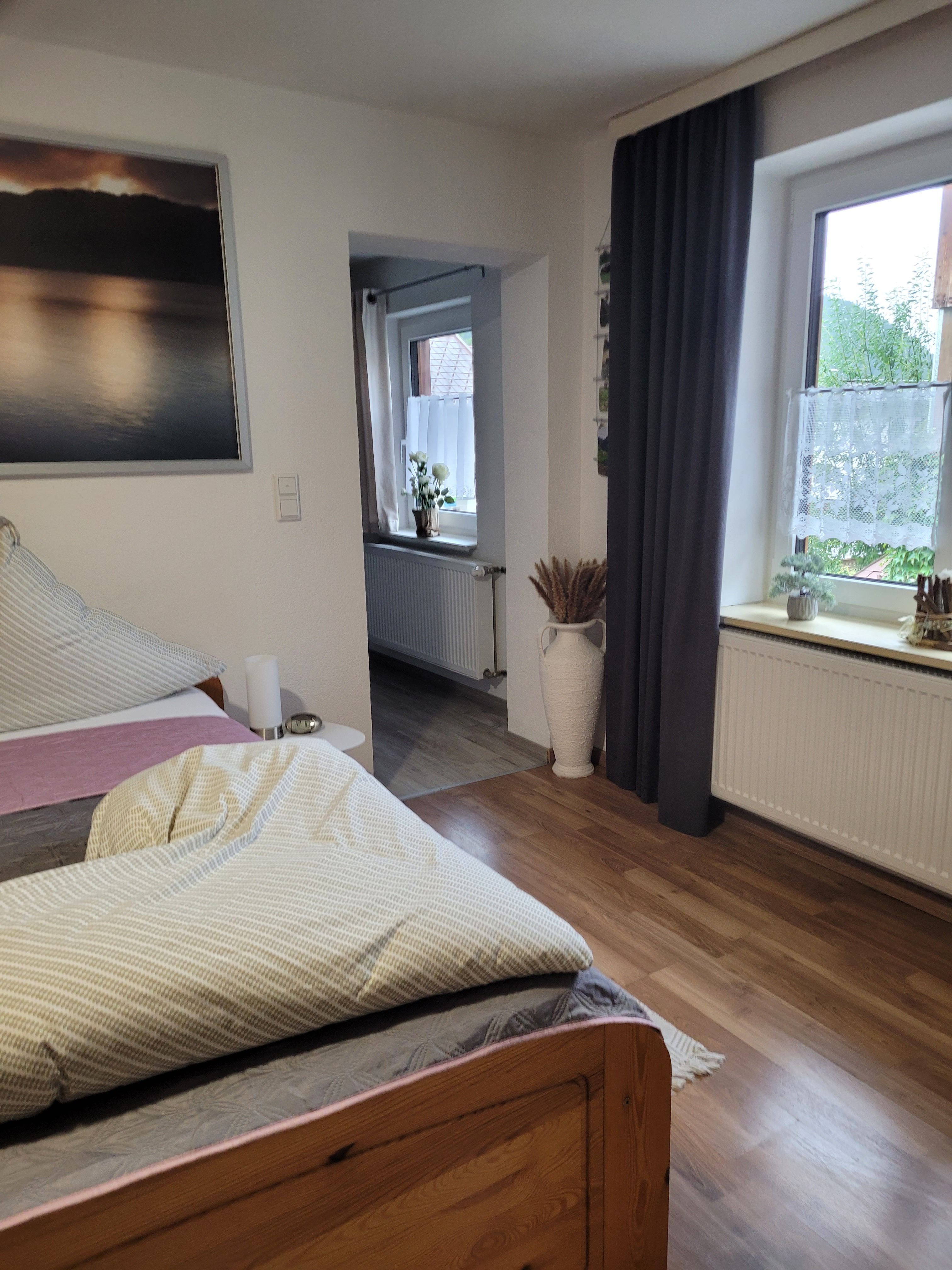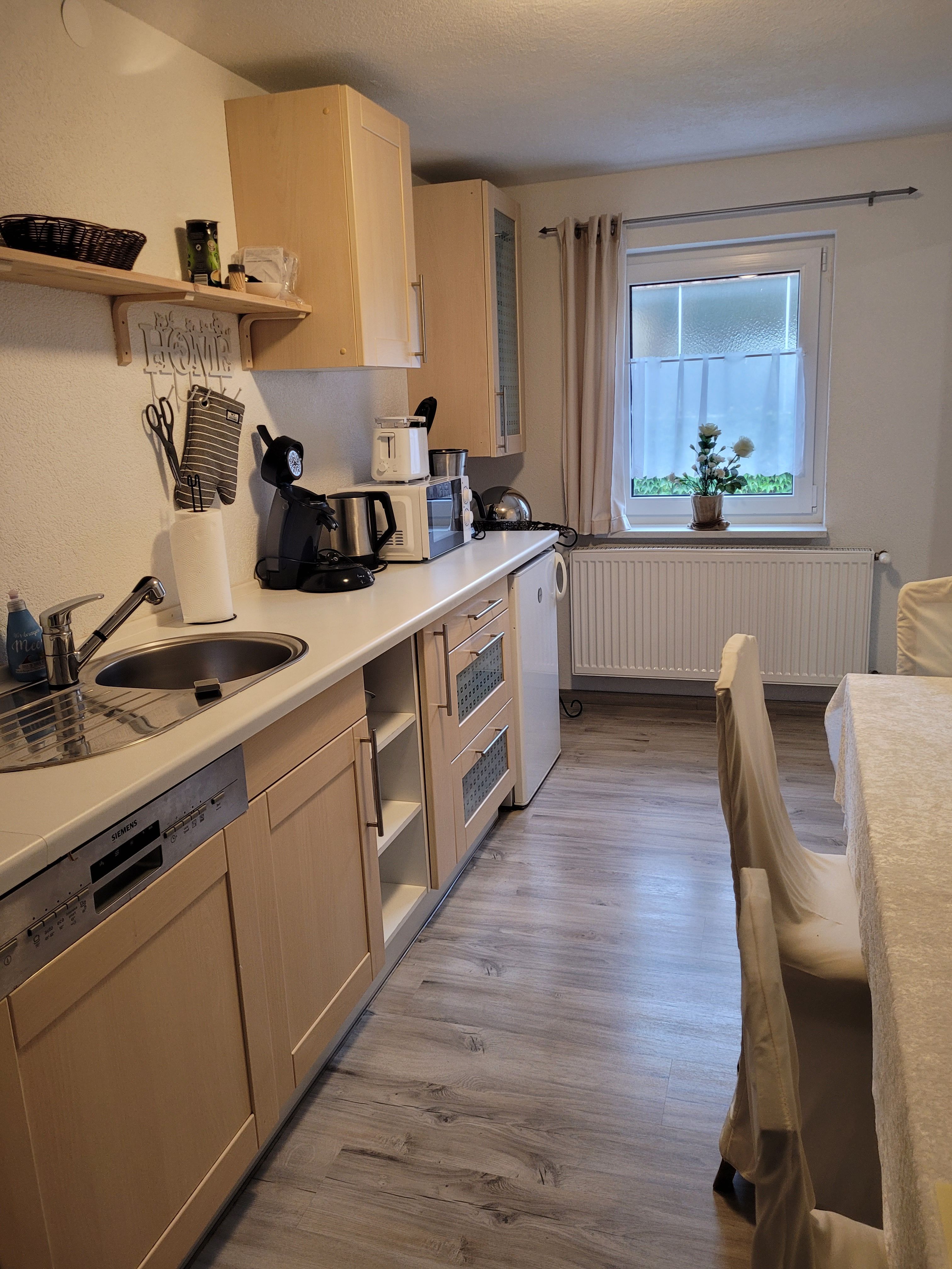Diese ca. 110m² große Fewo im EG verfügt über einen eigenen Eingang, 2x Doppelzimmer und 1 Dreibettzimmer zzgl. Kinderbett, 1 x Bad mit WC/DU und Badewanne. Desweiteren verfügt diese Wohnung über eine große & gemütliche Küche sowie einem kleinen Wohn- und Fernsehzimmer.
