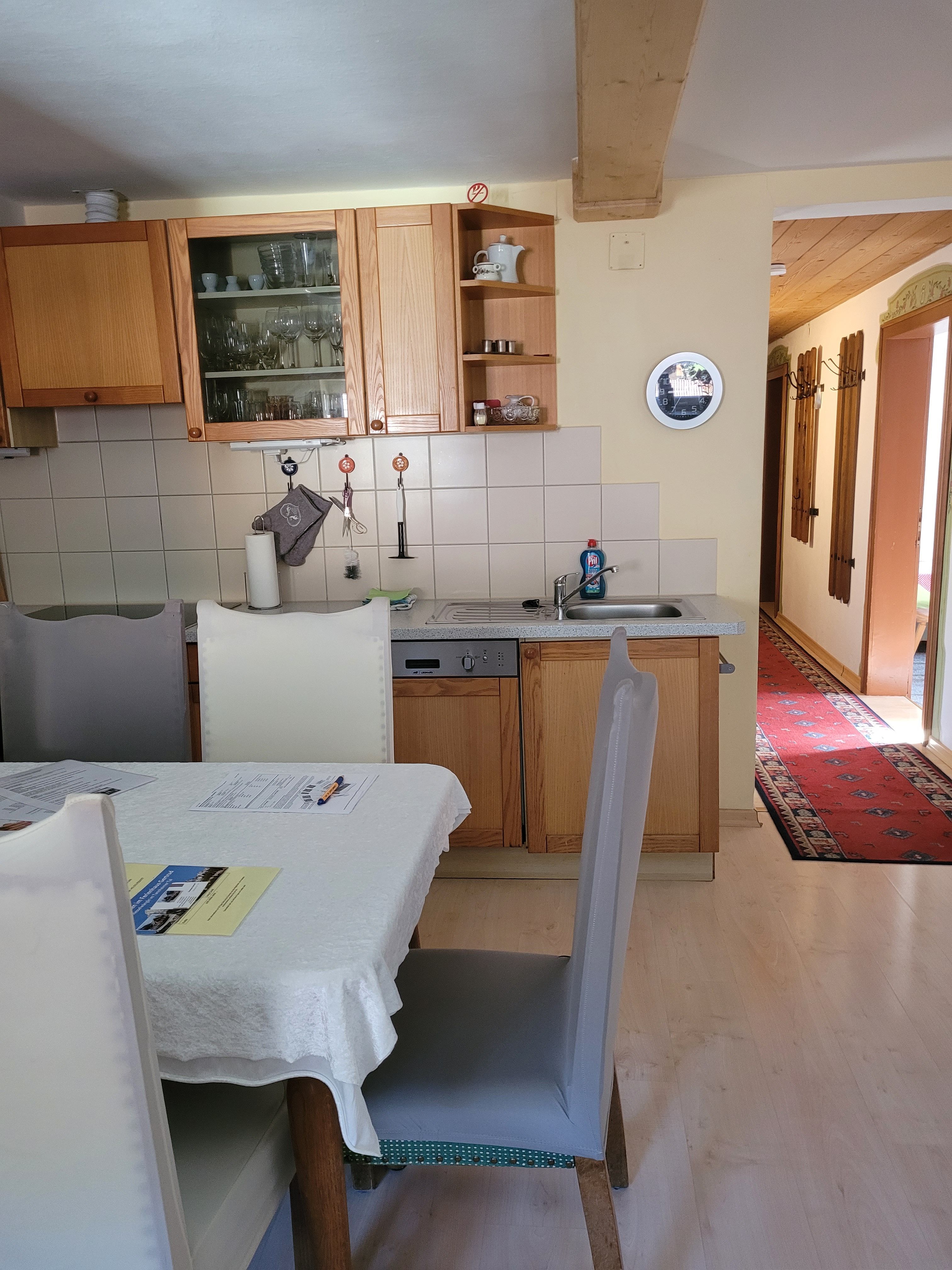 Die Ferienwohnung Alpenrose für 2 bis 8 (10) Personen besteht aus zwei Dreibettzimmern und einem Doppelzimmer. Sie verfügt über zwei Bäder mit Dusche/WC. (Handtücher, Fön und Bettwäsche werden gestellt.) Ebenfalls gehört eine komplett ausgestattete Wohnküche mit 25 m² (inkl. Geschirrspüler) mit Esstisch und Schlafcouch zur Ausstattung. SAT-TV und gratis WLAN stehen Ihnen ebenfalls frei zur Verfügung. Für Gäste mit Kleinkindern stellen wir, auf Wunsch, ebenfalls ein separates Babybett und ein Kinderhochstuhl bereit. PKW-Stellplätze sind ausreichend vor dem Haus vorhanden.