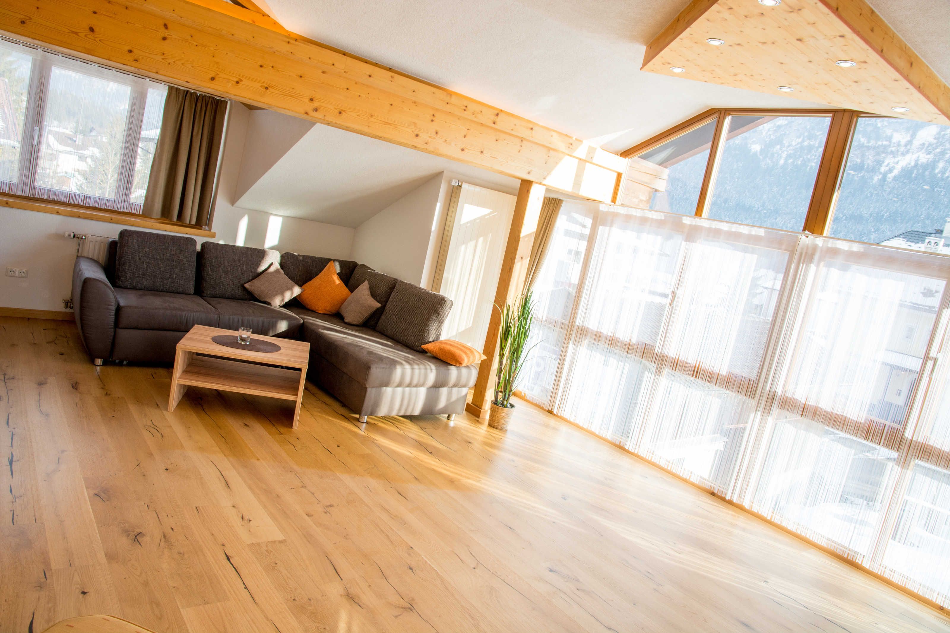 Unser Panoramaapart befindet sich im Dachgeschoß, ist ca. 90 m2 groß und bietet Platz für 1 bis 4 Personen. Ein Babybett kann natürlich jederzeit dazugestellt werden. Eine überdachte Loggia ermöglicht Ihnen einen herrlichen Bergblick. Über ein Panoramafenster genießen Sie den Ausblick auf Burg und Bergwelt.