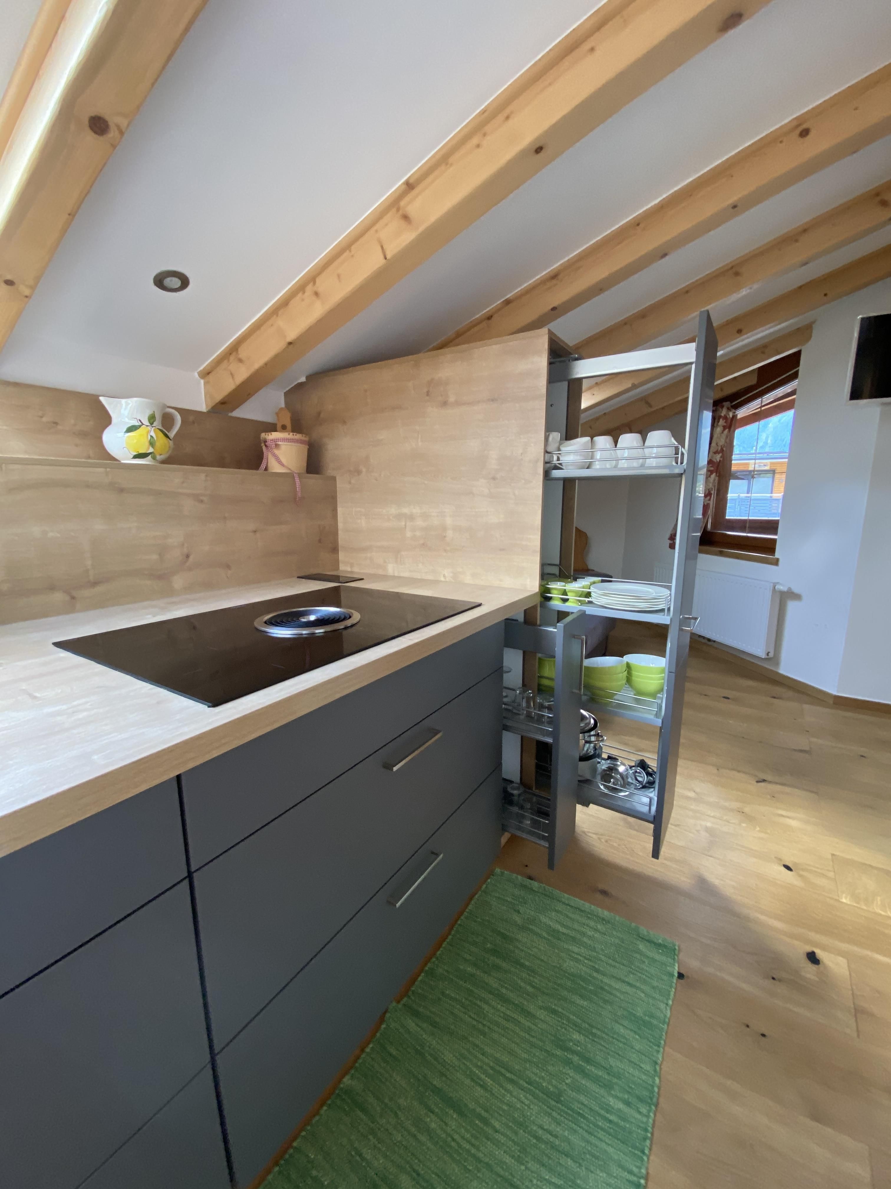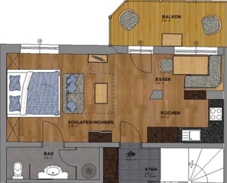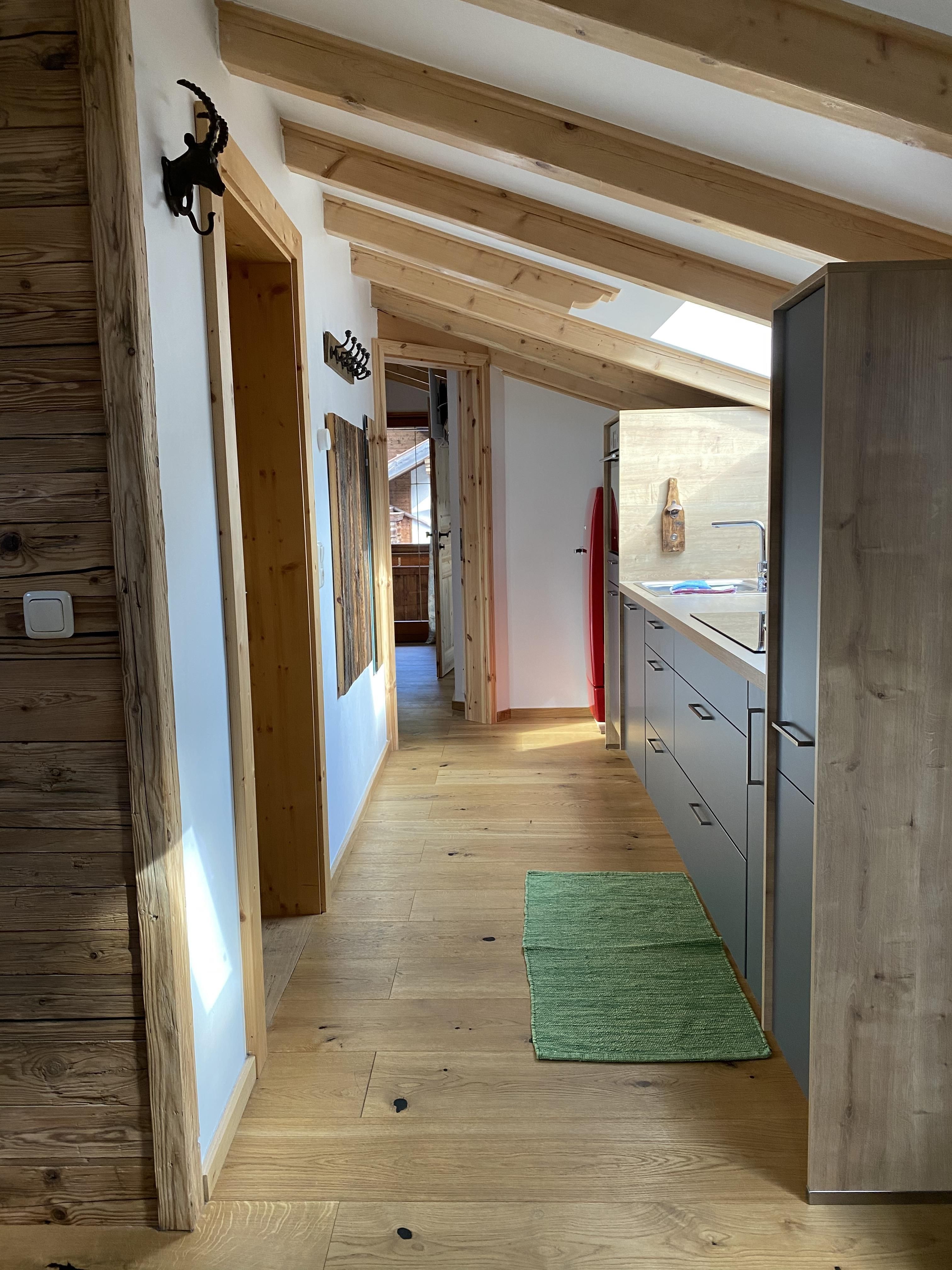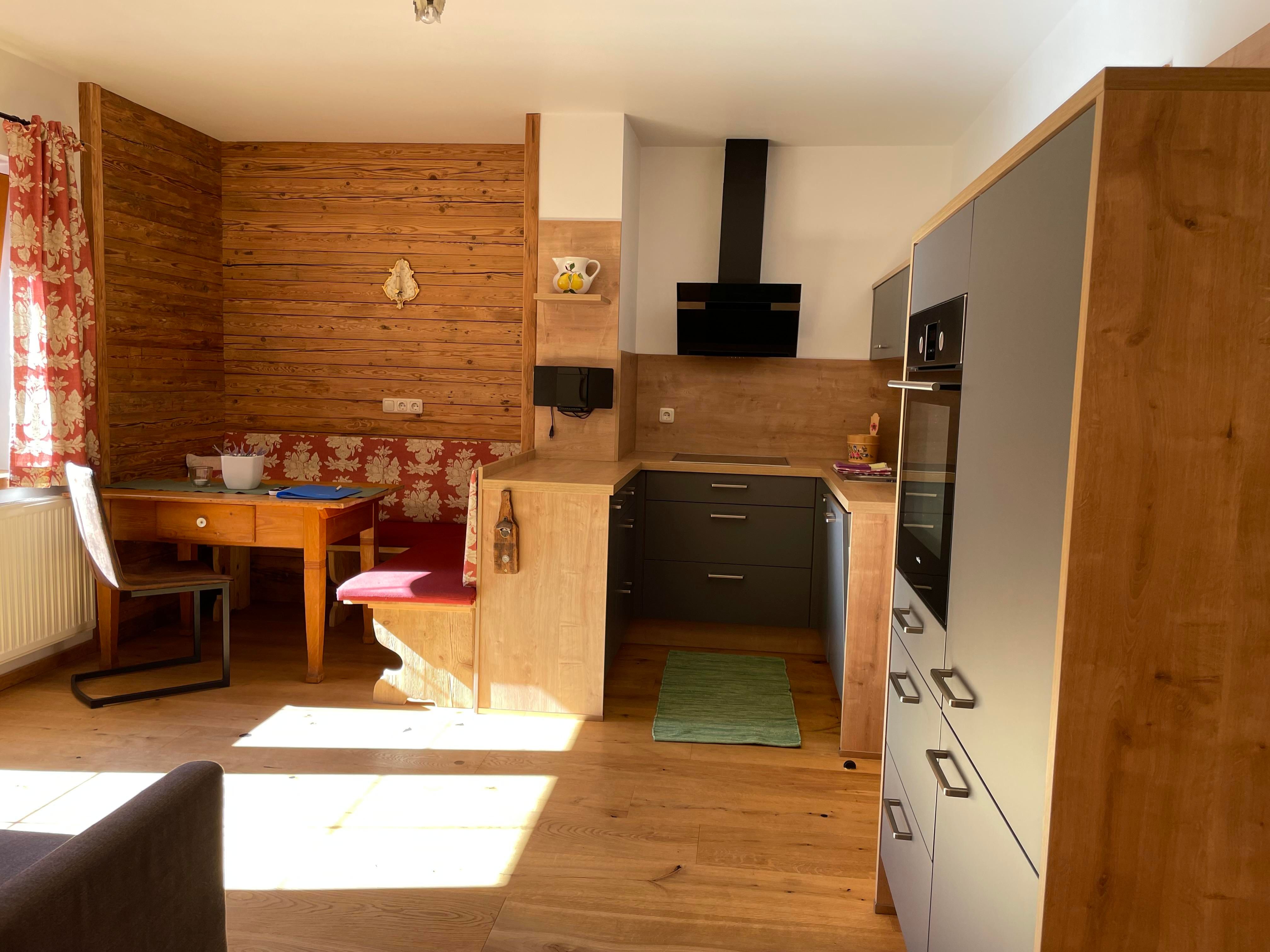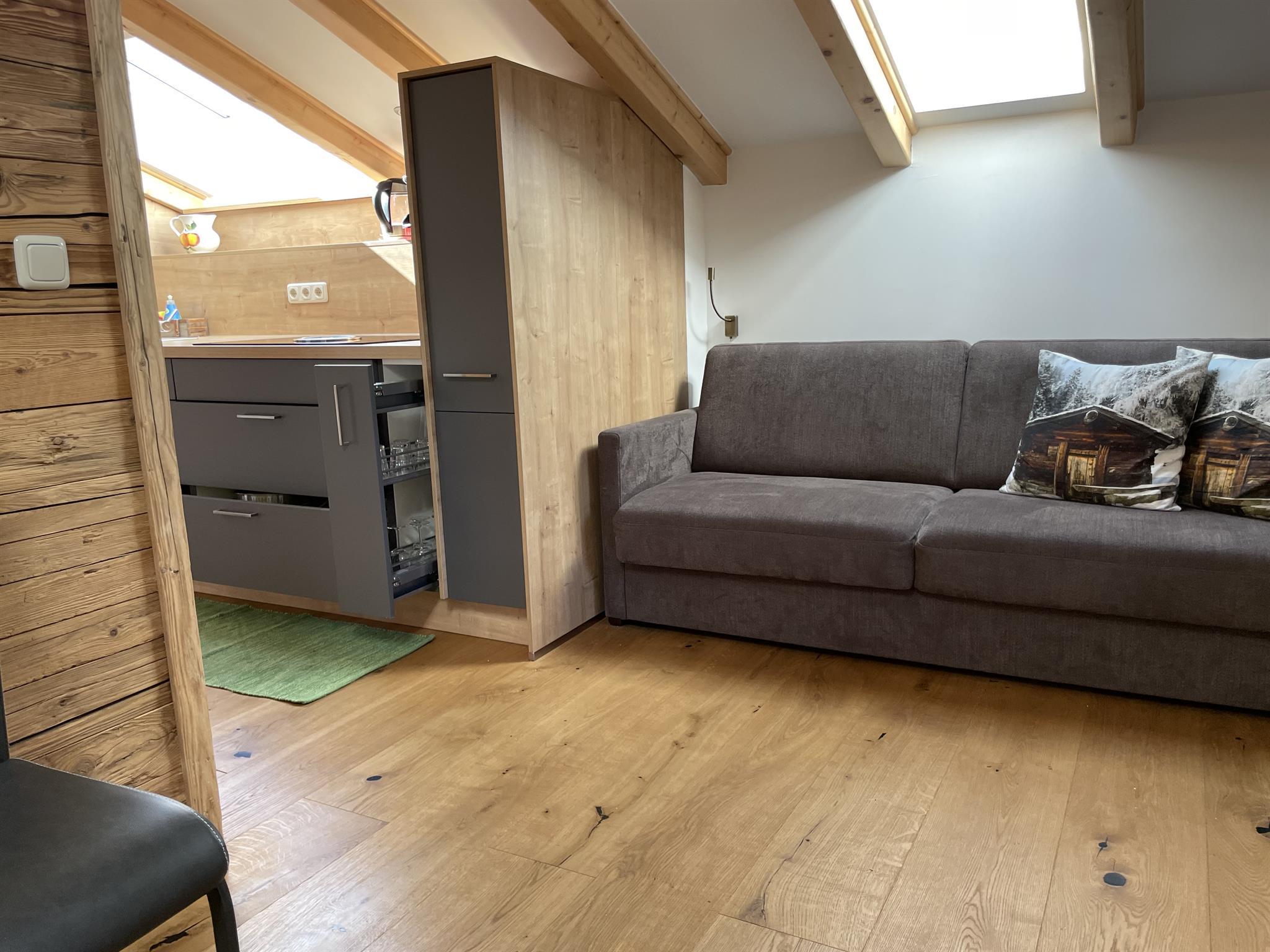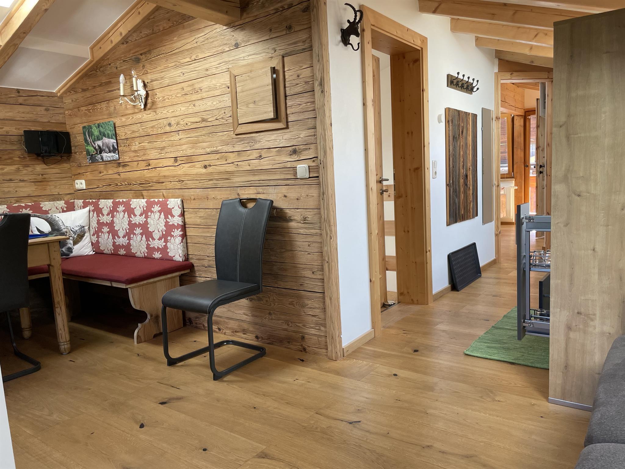 Unser Apartment Steinbock befindet sich im 2. Stock und besteht aus: 1 Doppelzimmer, 1 Badezimmer mit Badewanne und WC , 1 Wohnküche mit gemütlichem Schlafsofa für bis zu 2 weitere Personen mit Blick auf den Nederkogl und einer modernen Küchenzeile ausgestattet mit Spülmaschine, Induktionsherd, Backofen, Kaffeemaschine, Kühlschrank, Geschirr, Essbereich ….. und Balkon. Größe ca. 36 m²
