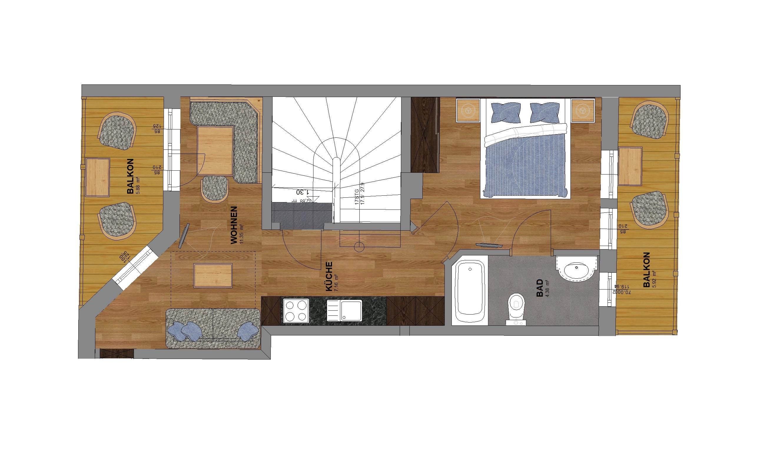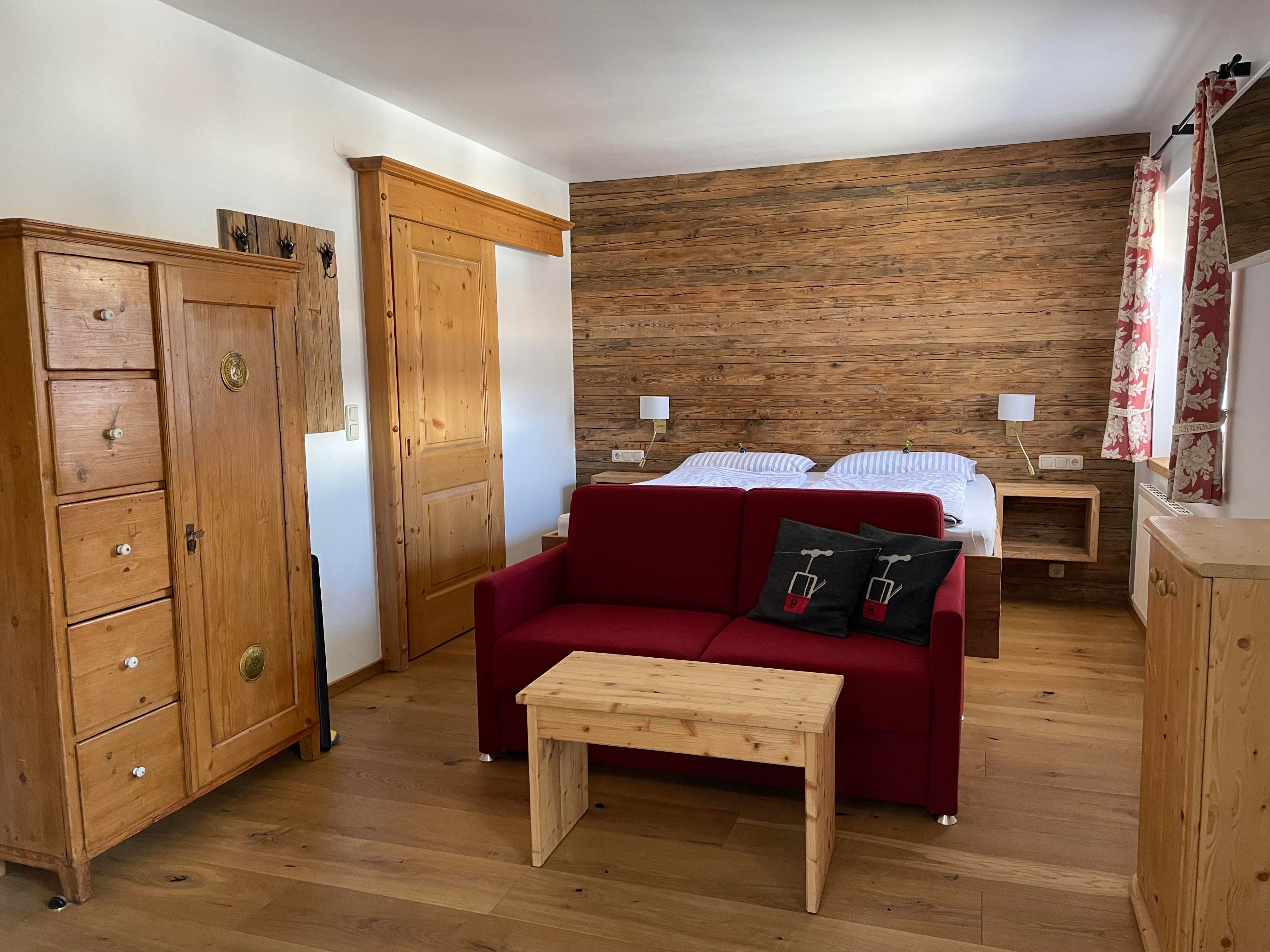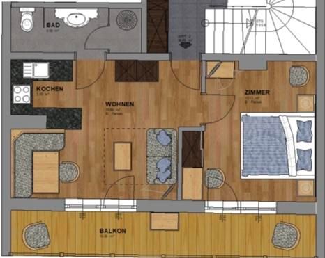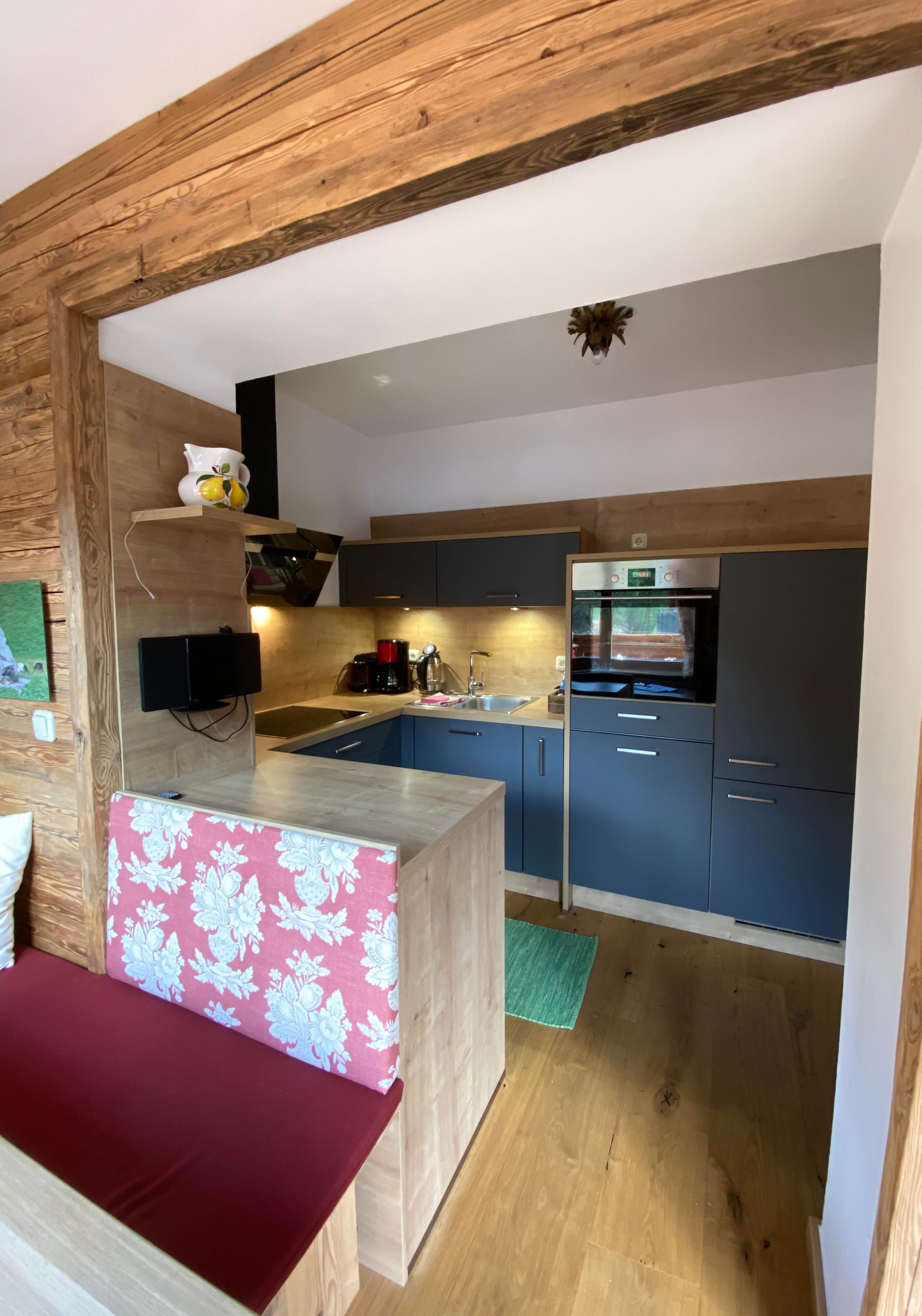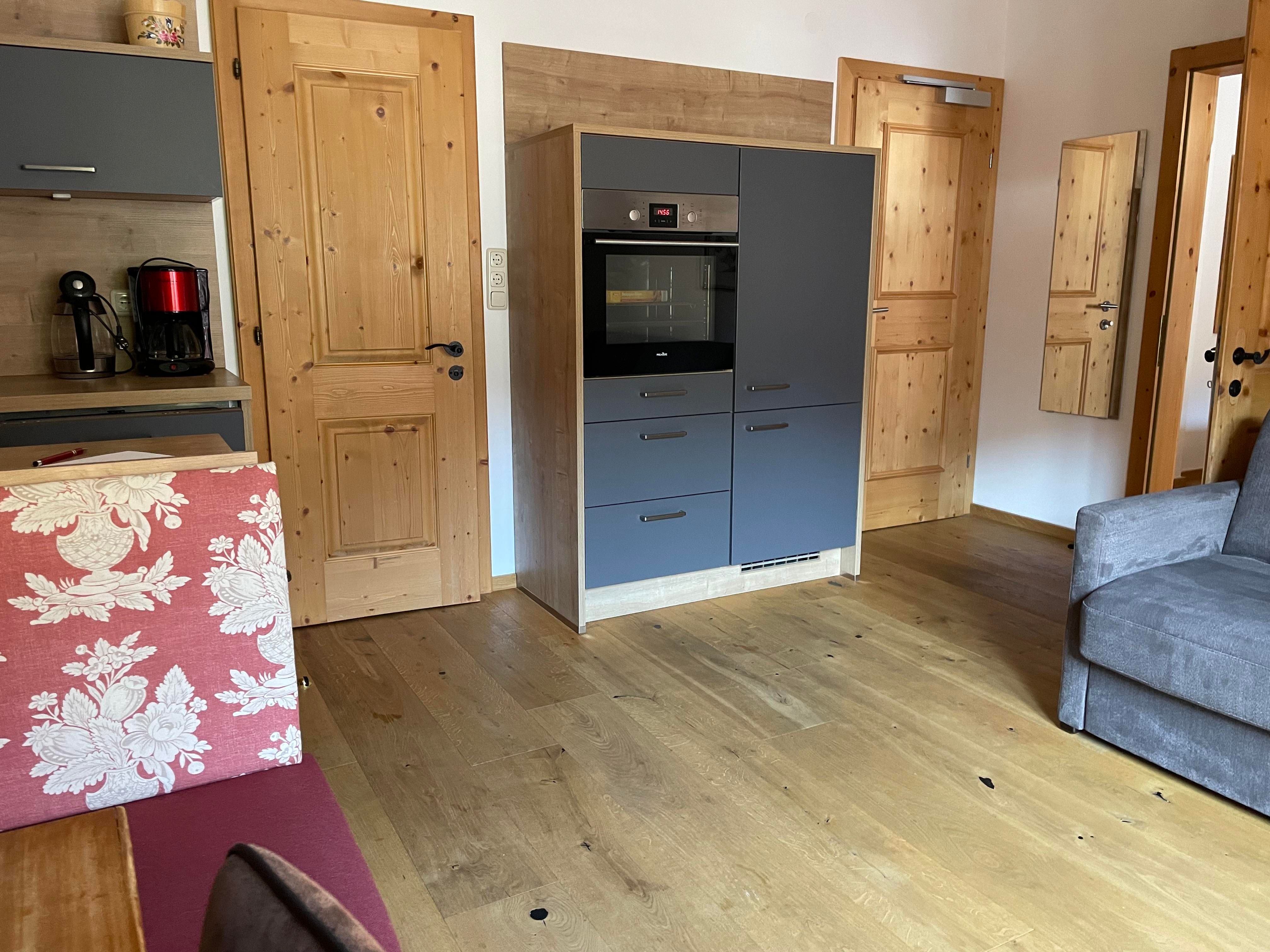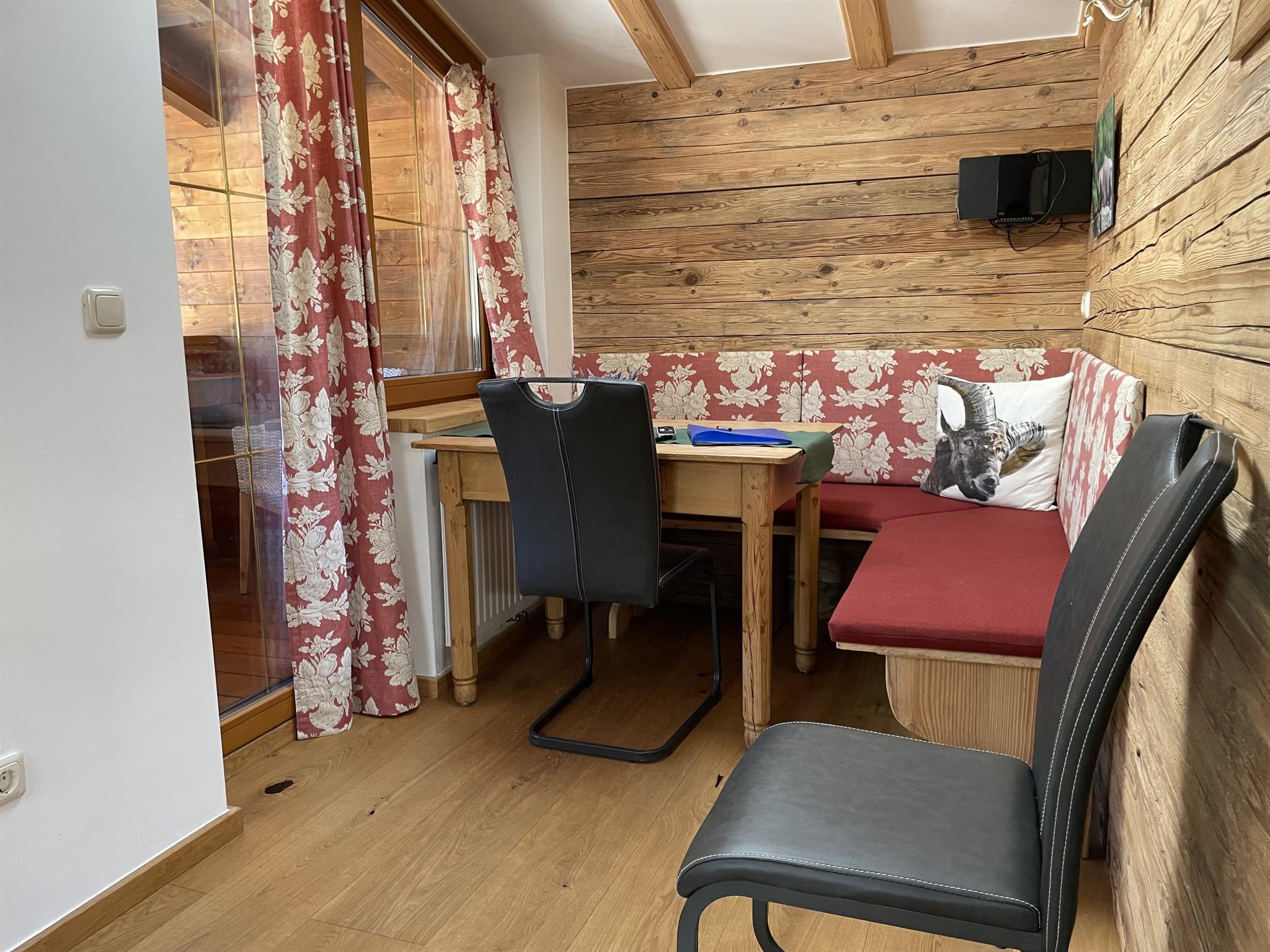 Unser Apartment Steinbock befindet sich im 2. Stock und besteht aus: 1 Doppelzimmer, 1 Badezimmer mit Badewanne und WC , 1 Wohnküche mit gemütlichem Schlafsofa für bis zu 2 weitere Personen mit Blick auf den Nederkogl und einer modernen Küchenzeile ausgestattet mit Spülmaschine, Induktionsherd, Backofen, Kaffeemaschine, Kühlschrank, Geschirr, Essbereich ….. und Balkon. Größe ca. 36 m²