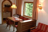 Ruhiges Appartement ( ca. 45 m²) mit kleiner Südloggia (Parterre oder 1. Stock) und Blick über unsere Gartenanlage zum Neunerköpfle und in Richtung Vilsalpsee! Wohnraum mit Couch und Essecke, kleine Küche, Vorraum, ein Schlafraum mit Doppelbett, ein Schlafraum mit Einzelbett, Bad/WC, TV/Radio, Telefon.