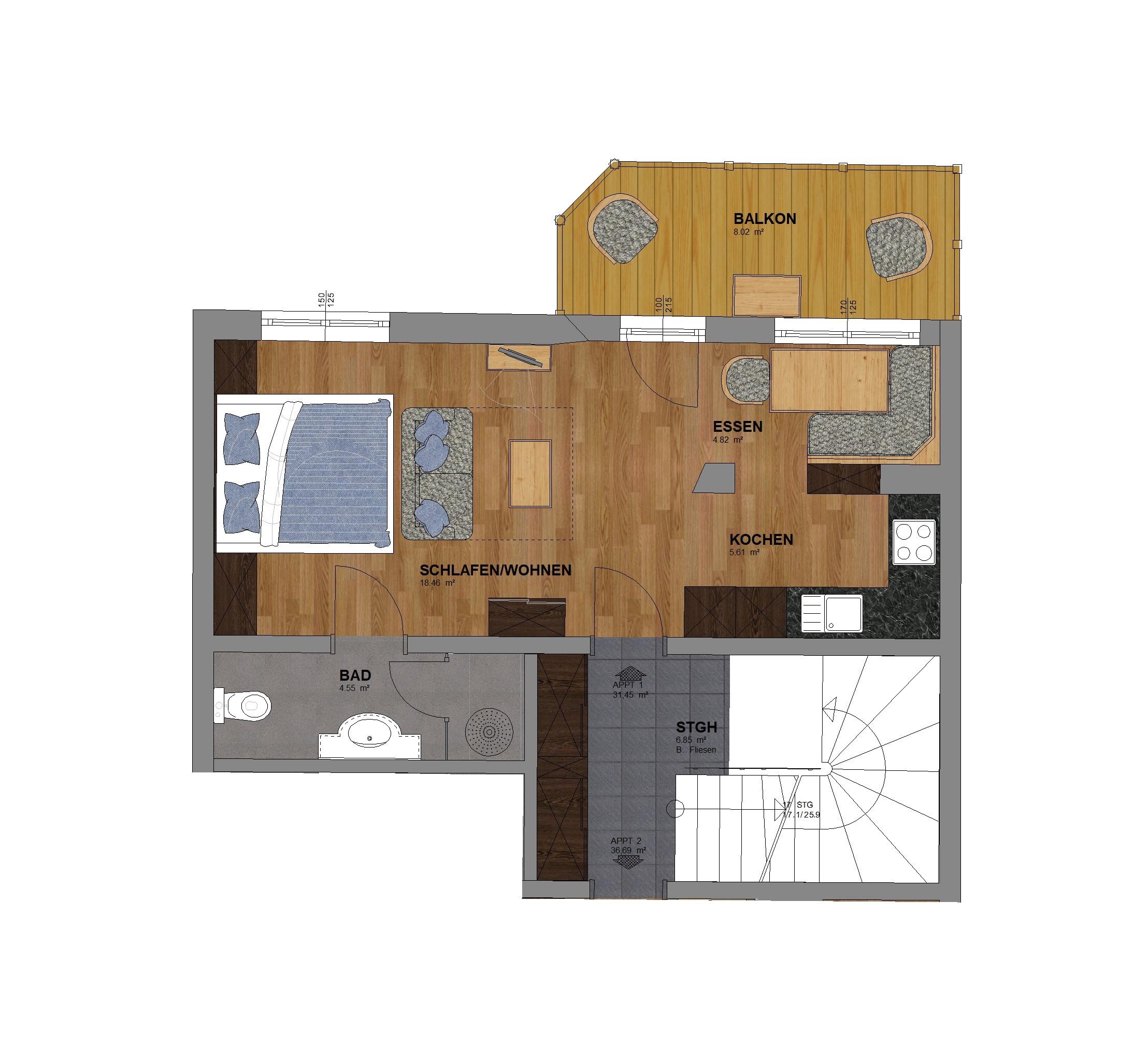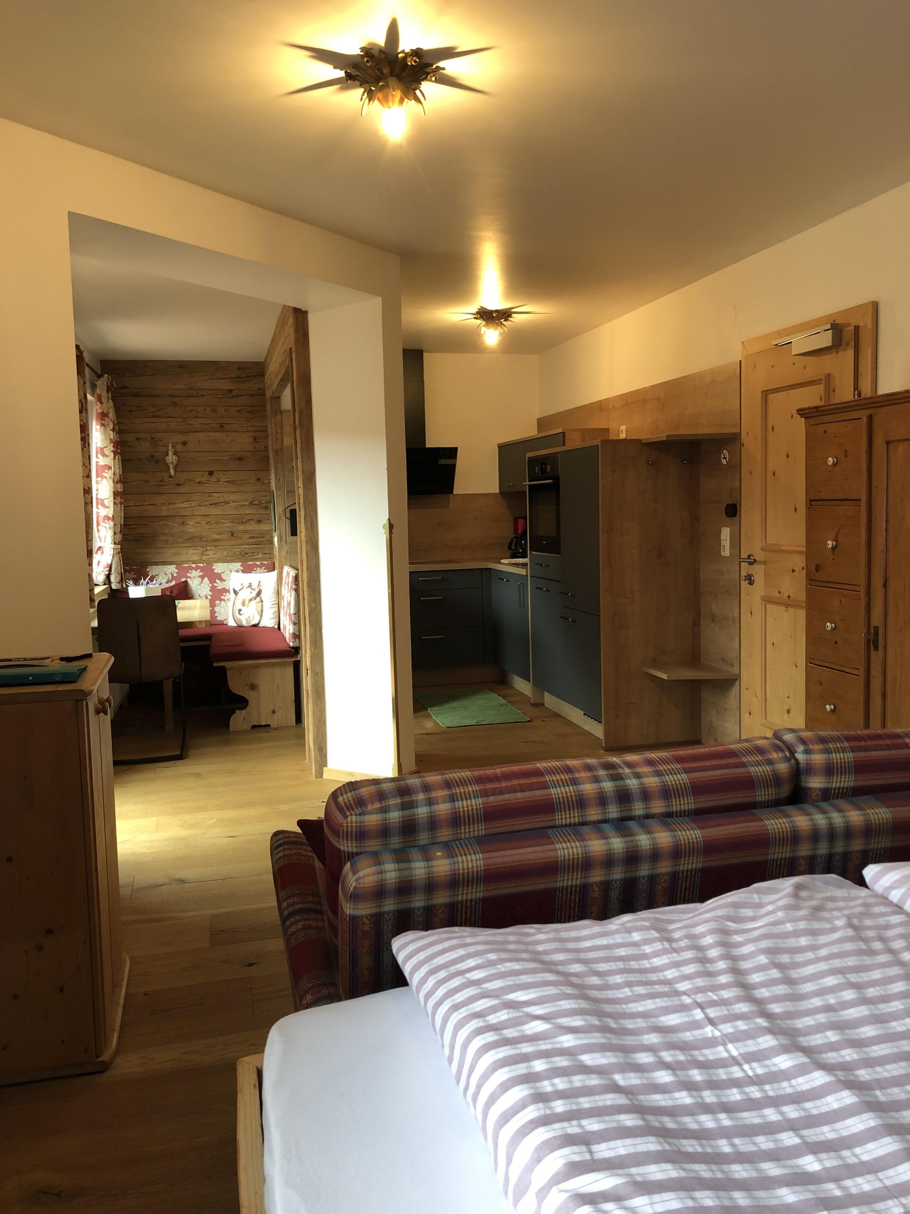 Das Apartment Bergziege (Größe ca.34 m²), besteht aus einem Wohn/Schlafraum:1 Doppelbett,1 Schlafcouch,Wohnbereich mit gemütlicher Sitzecke mit Blick auf den Gaislachkogl. Eine moderne Küchenzeile mit Spülmaschine, Induktionsherd, Backofen, Kaffee und -Nespressomaschine, Kühlschrank, Geschirr, Essbereich etc. Das Duschbad mit Regendusche und WC hat modernen Standard.Großer Balkon mit Nachmitagssonne.