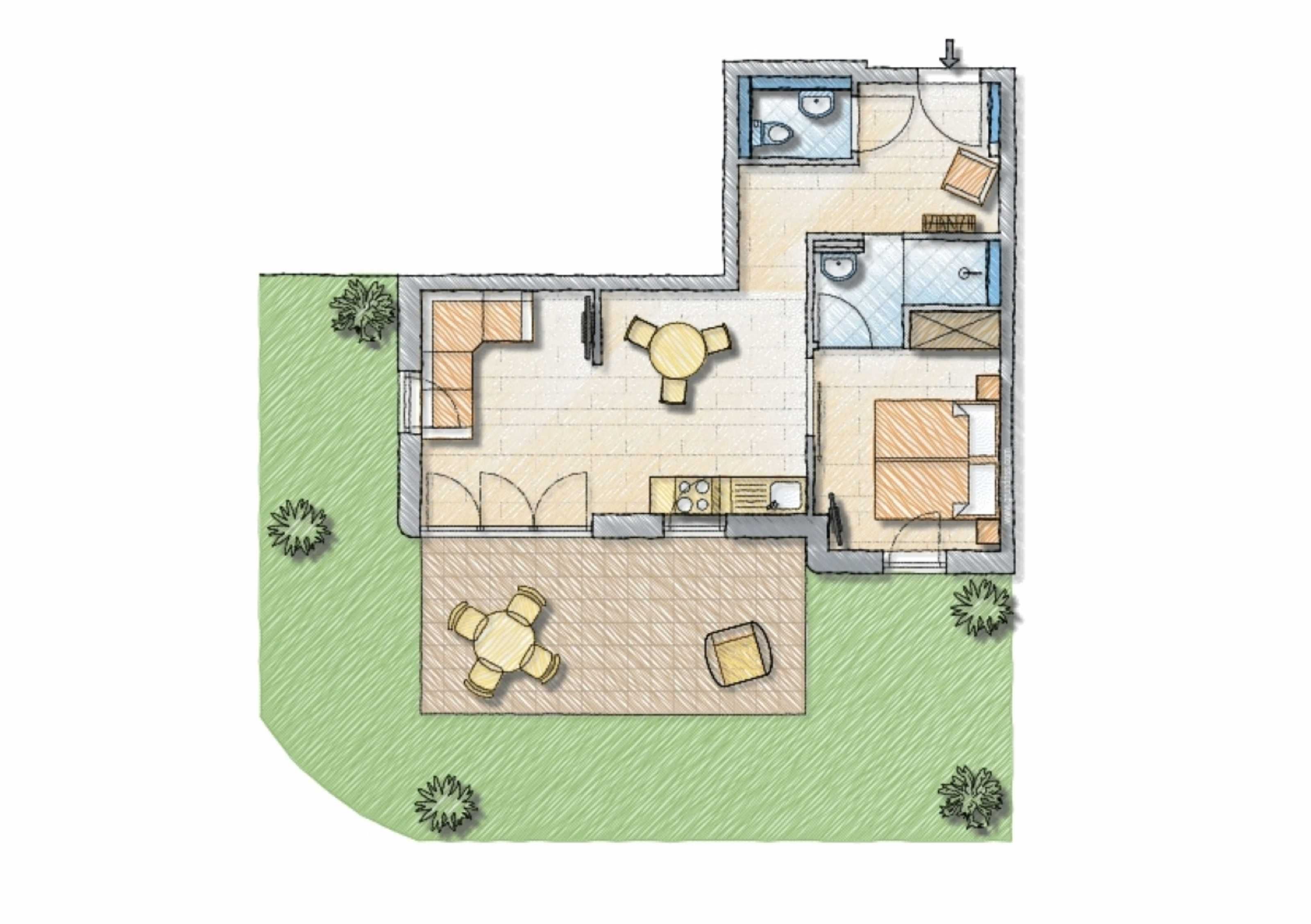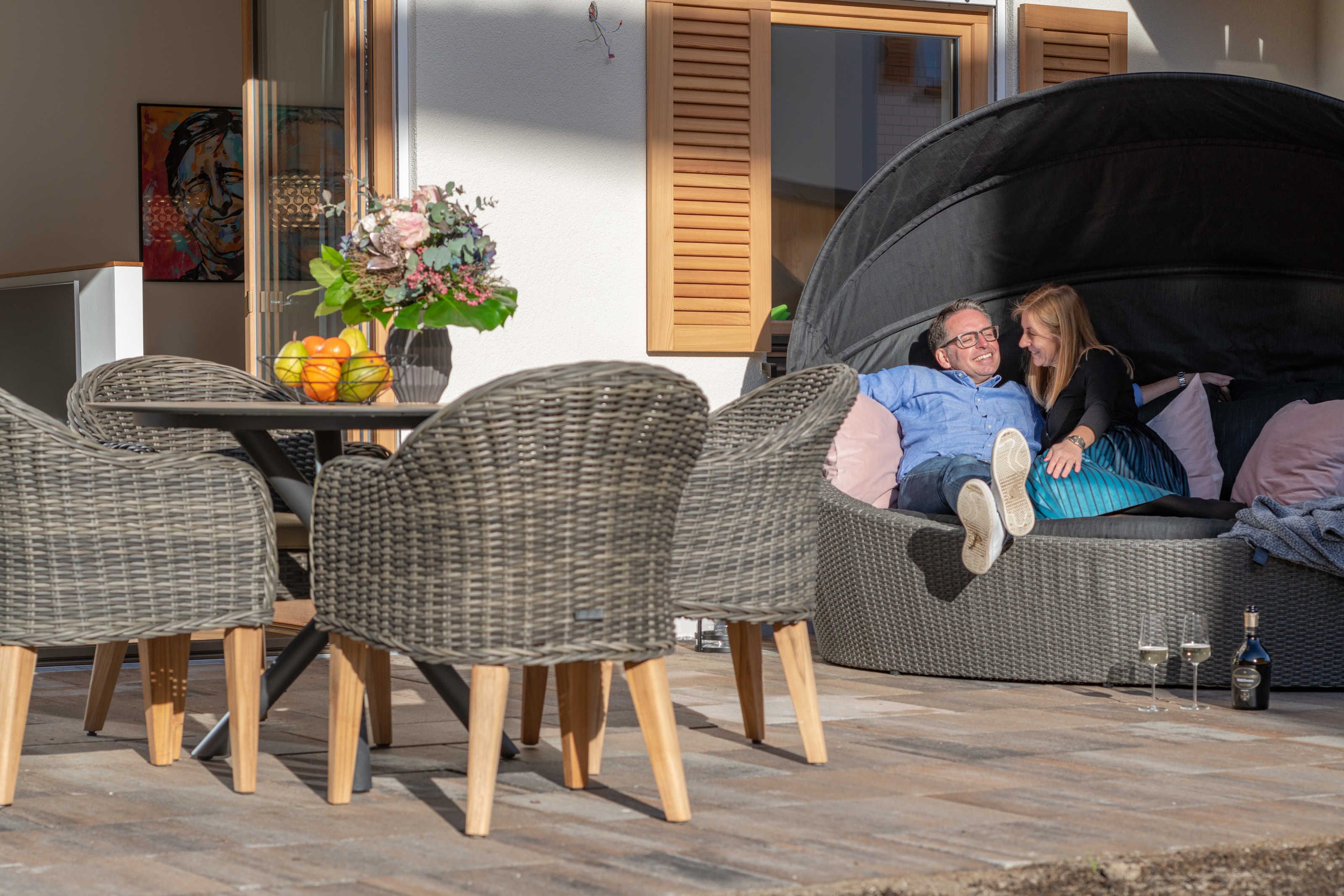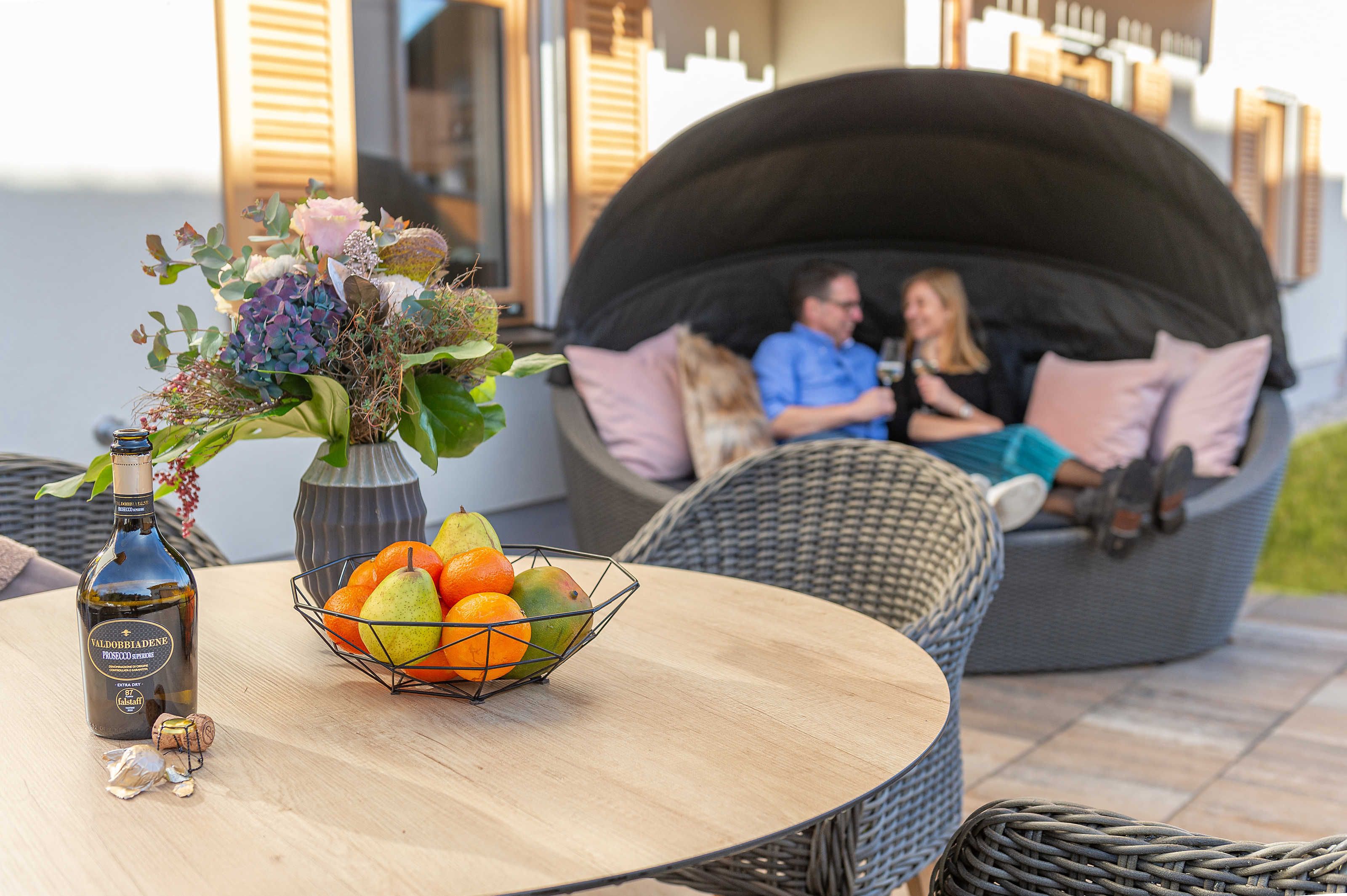 Mit einer Wohnfläche von rund 55 m² und mit dem privaten Garten in Süd-Westausrichtung bietet die Ferienwohnung mehr als genug Platz für zwei Personen. Auf der zur Wohnung gehörenden Sonnenterrasse mit Grill und den schönen Loungemöbeln genießen Sie Ihre Zeit zu Zweit. Es wird Ihnen an nichts fehlen.