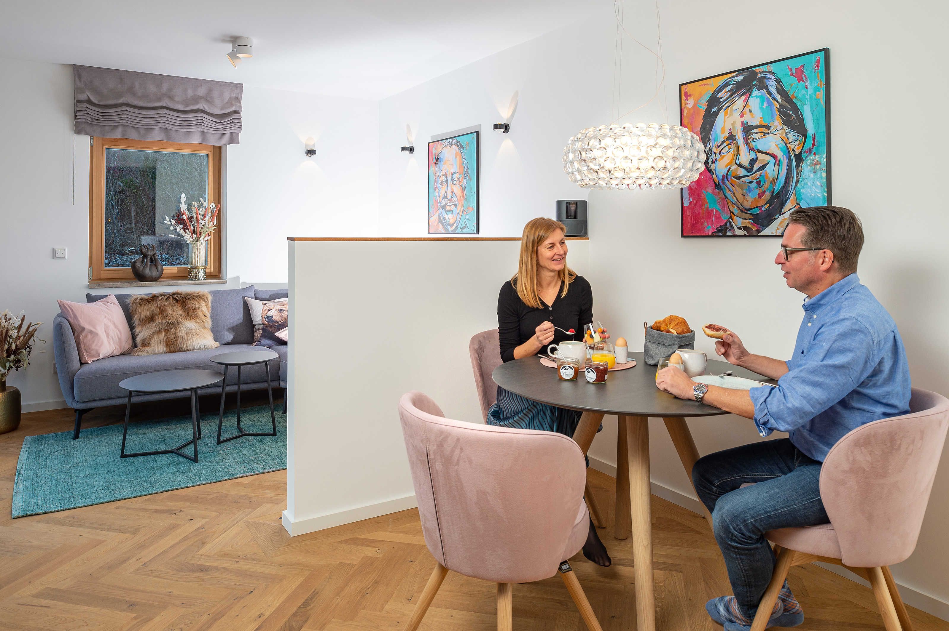 Unser Credo bei allen Überlegungen ist immer gewesen, dass unsere Gäste im Urlaub keineswegs schlechter wohnen möchten als sie es von zu Hause gewohnt sind. Die mit viel Liebe und Herzblut ausgesuchte Einrichtung und Ausstattung hat einen Ort erschaffen, an dem man gerne ist und zu dem man gerne zurückkommt.