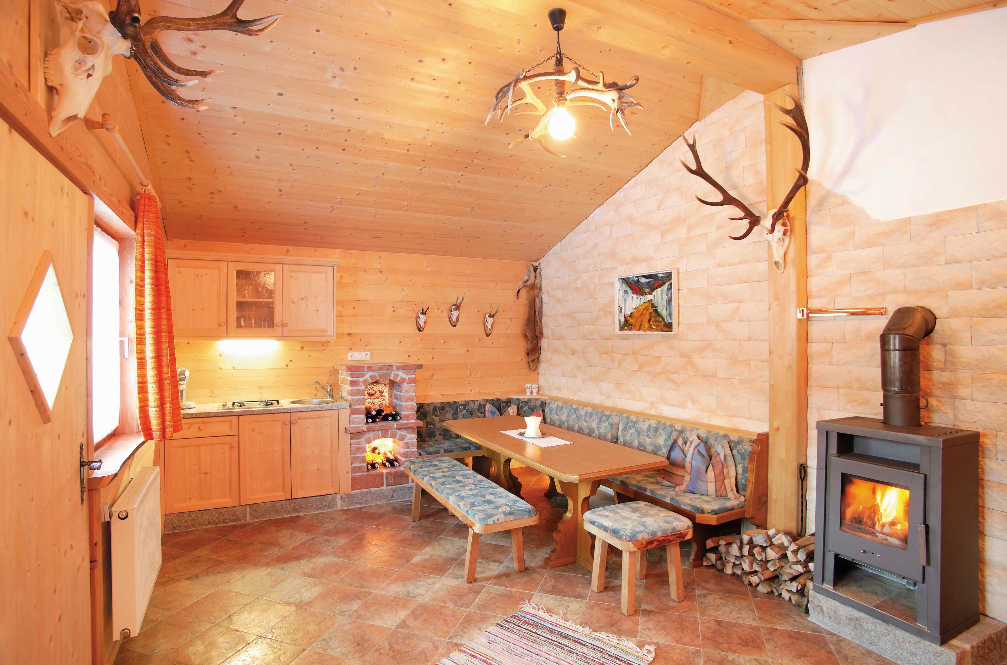 GENUSS ZUM DAZUBUCHEN: Die Hütten verfügen über eine eingerichtete Küche oder Küchenzeile. Doch wenn der Herd einmal kalt bleiben soll, reservieren wir Ihnen gerne einen Tisch im 4-Sterne-Superior Verwöhnhotel Kristall (Schlemmer-Frühstücksbuffet 29,- p. Pers., ¾ Verwöhnpension 89,- p. Pers).