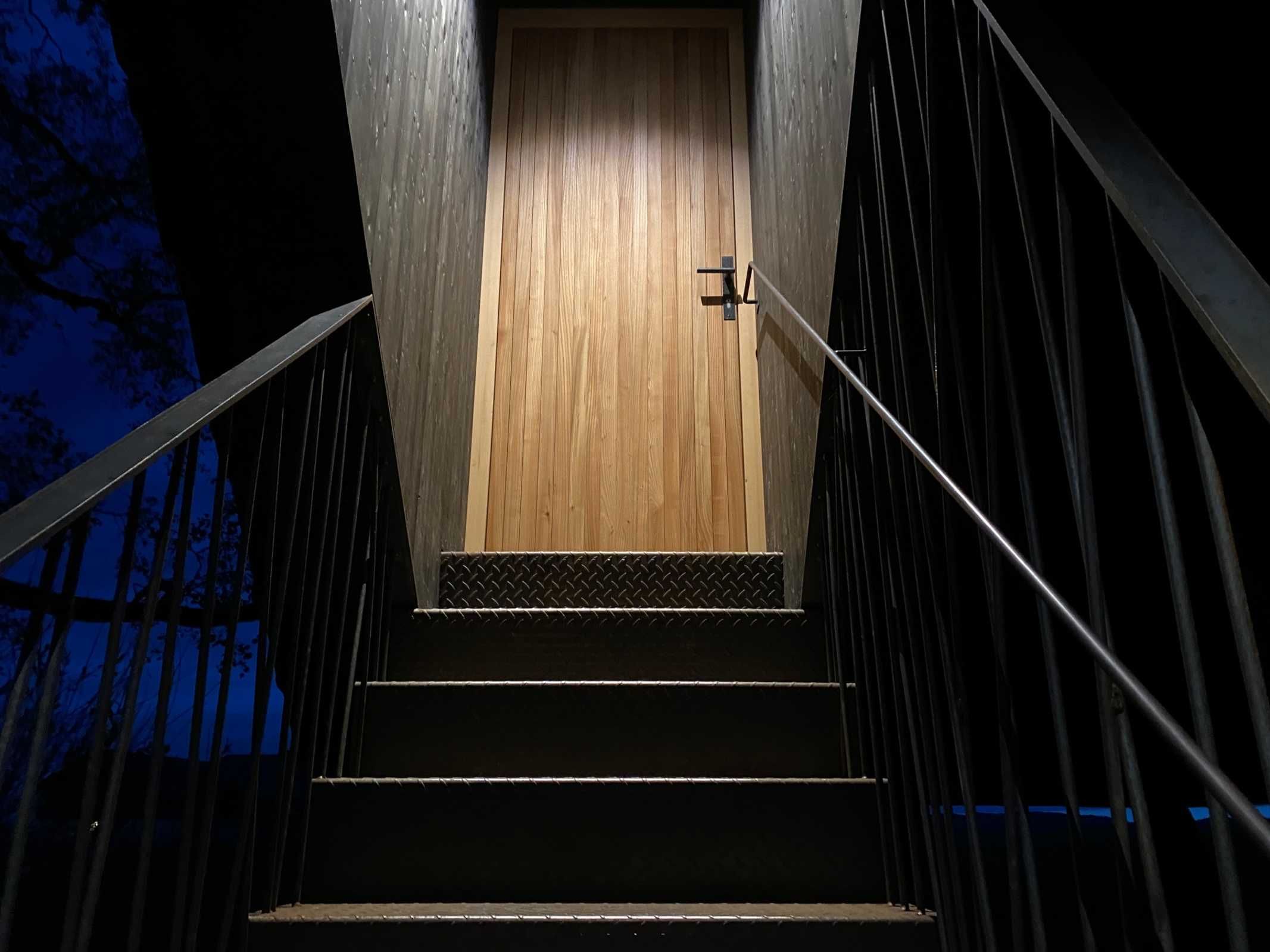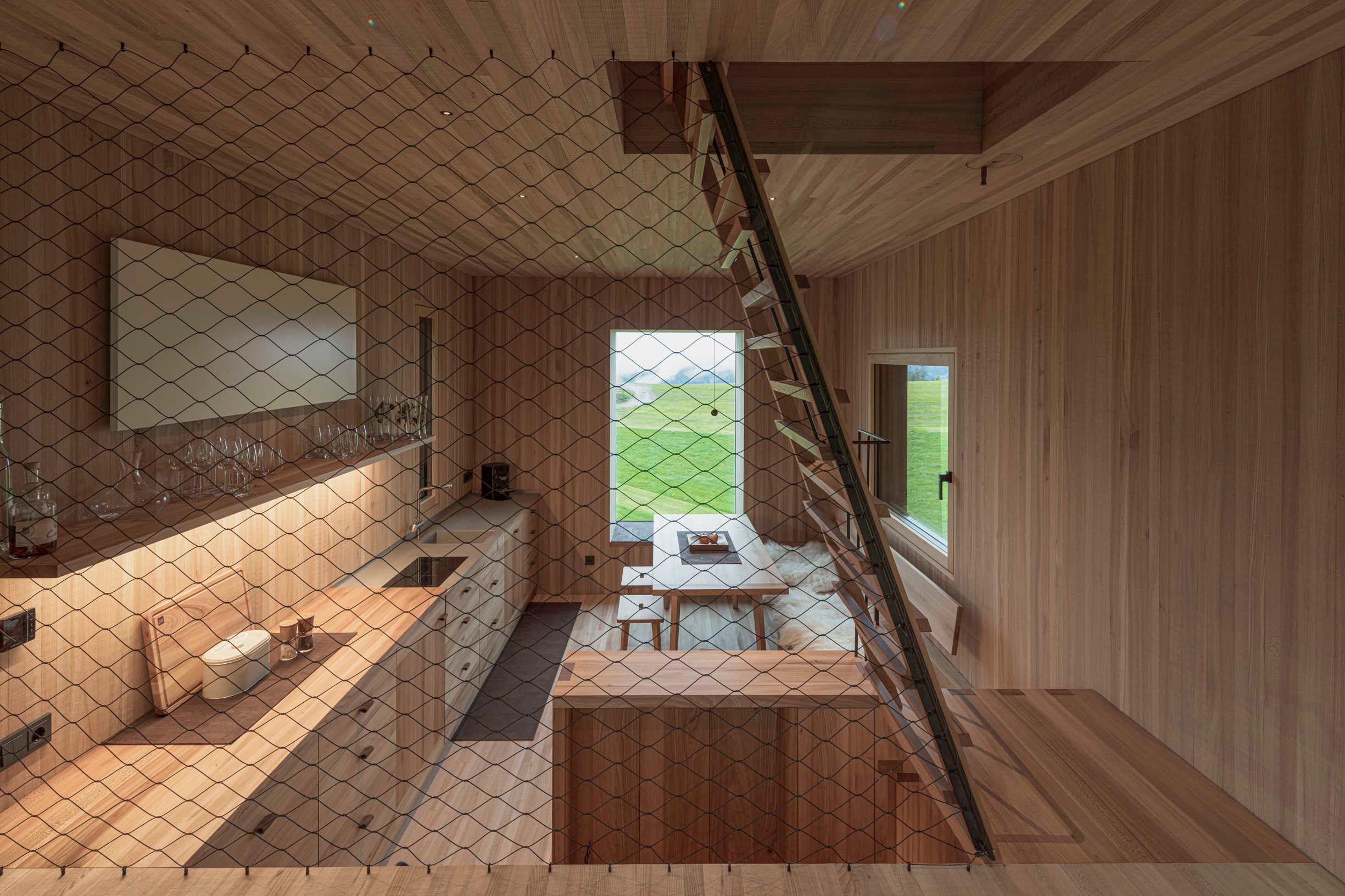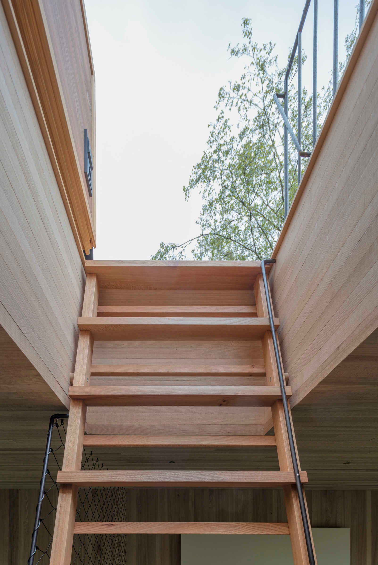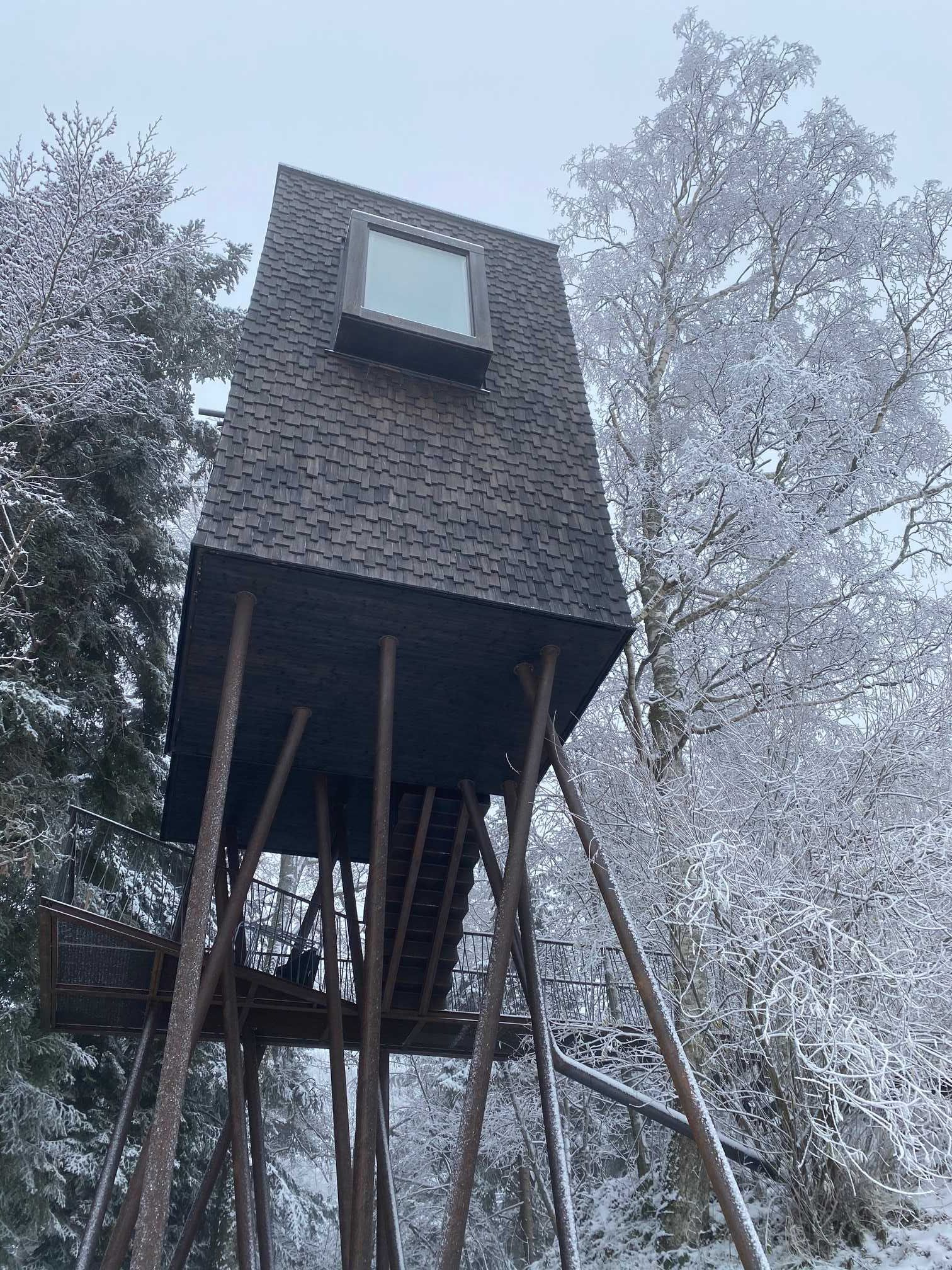 Unser Baumhaus wurde 2020 fertiggestellt. Es ist ein Holzbau auf Stahlsäulen mit einer Gesamthöhe von ca. 13 m. Außen hat das Häuschen eine Schindelfassade und innen ist es komplett aus heimischem Ulmenholz ausgebaut. Die Architektur wird Sie begeistern - ebenso die Ruhe und Aussicht.
