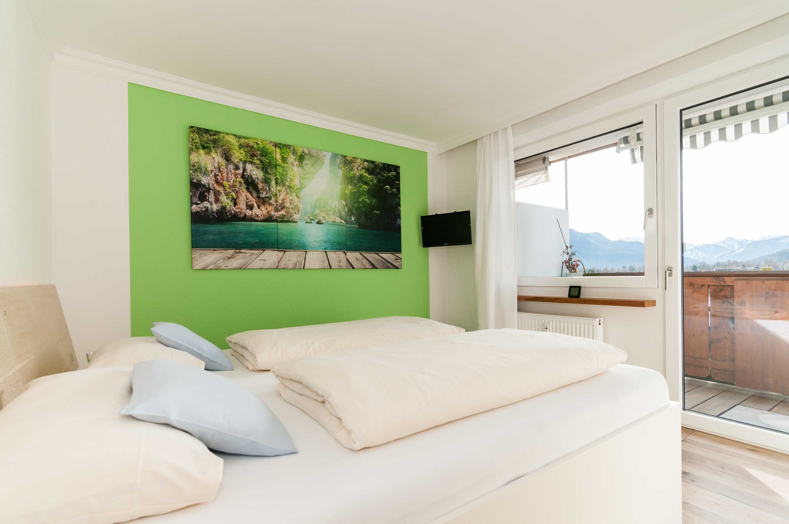Schon bei dem Betreten der Wohnung mit dem weiten Blick über den See und das Gebirge kommt Urlaubsstimmung auf und läßt Sie schnell den zurückgelassenen Alltag vergessen. Die Ferienwohnung vermittelt Ihnen das Gefühl von sommerlicher Frische und Leichtigkeit.