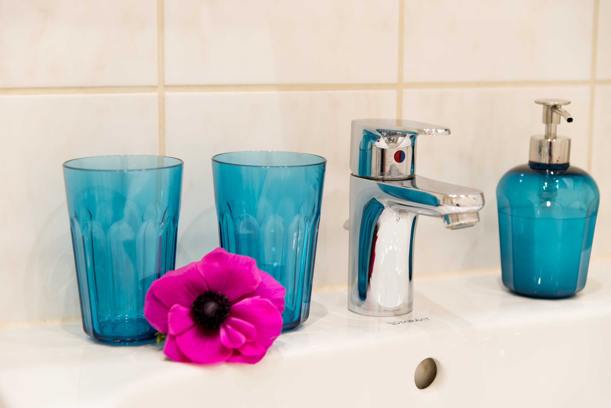 • separate Küche mit 4-Feld-Cerankochstelle, kompakter Backofen mit integrierter Mikrowelle, Wasserkocher, Kühlschrank mit Gefrierfach, Kaffeemaschine, Spülmaschine