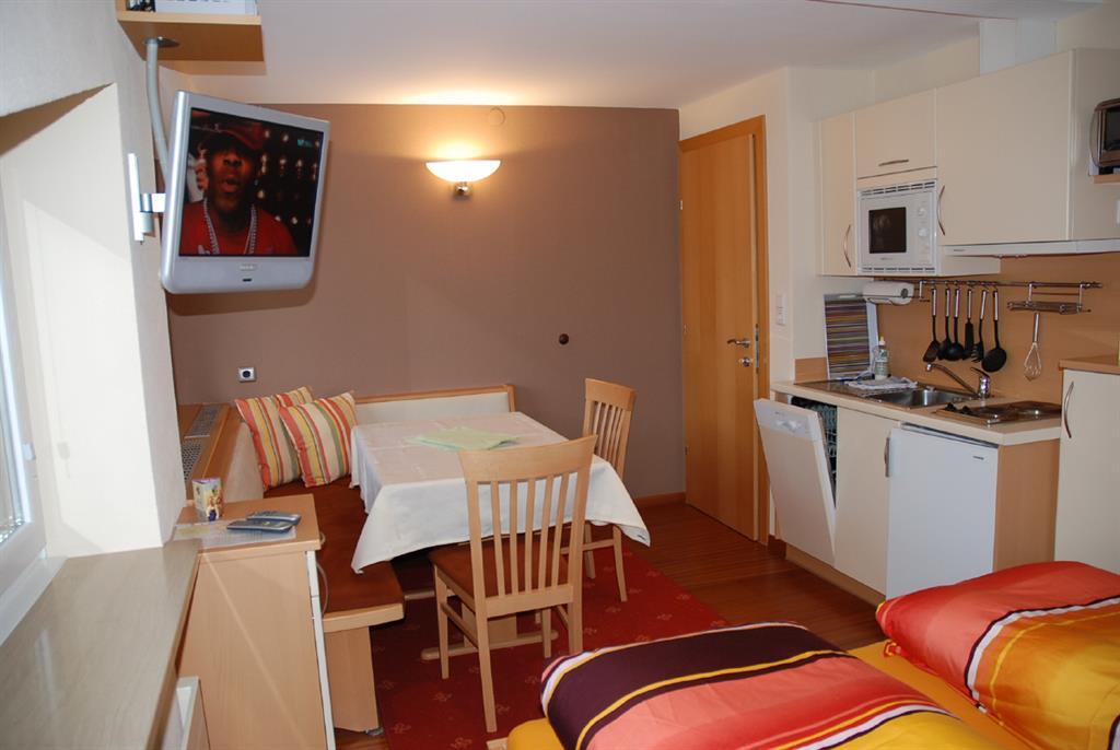 Das Appartement Tschirgant mit ca. 50 m² befindet sich im 1. Stock und verfügt über: 1 Schlafzimmer mit separater DU/WC u. Balkon, Sat-TV; 1 Wohnschlafzimmer mit 1 Doppelbett und integrierter, vollausgestatteter Küche u. Essbereich, Sat-TV, Kühlschrank, Spülmaschine, Mikrowelle, Kaffeemaschine uvm.; sowie 1 separate DU/WC; 1 gemütlicher Wohnschlafraum mit Doppelschlafcouch (5.Pers.)