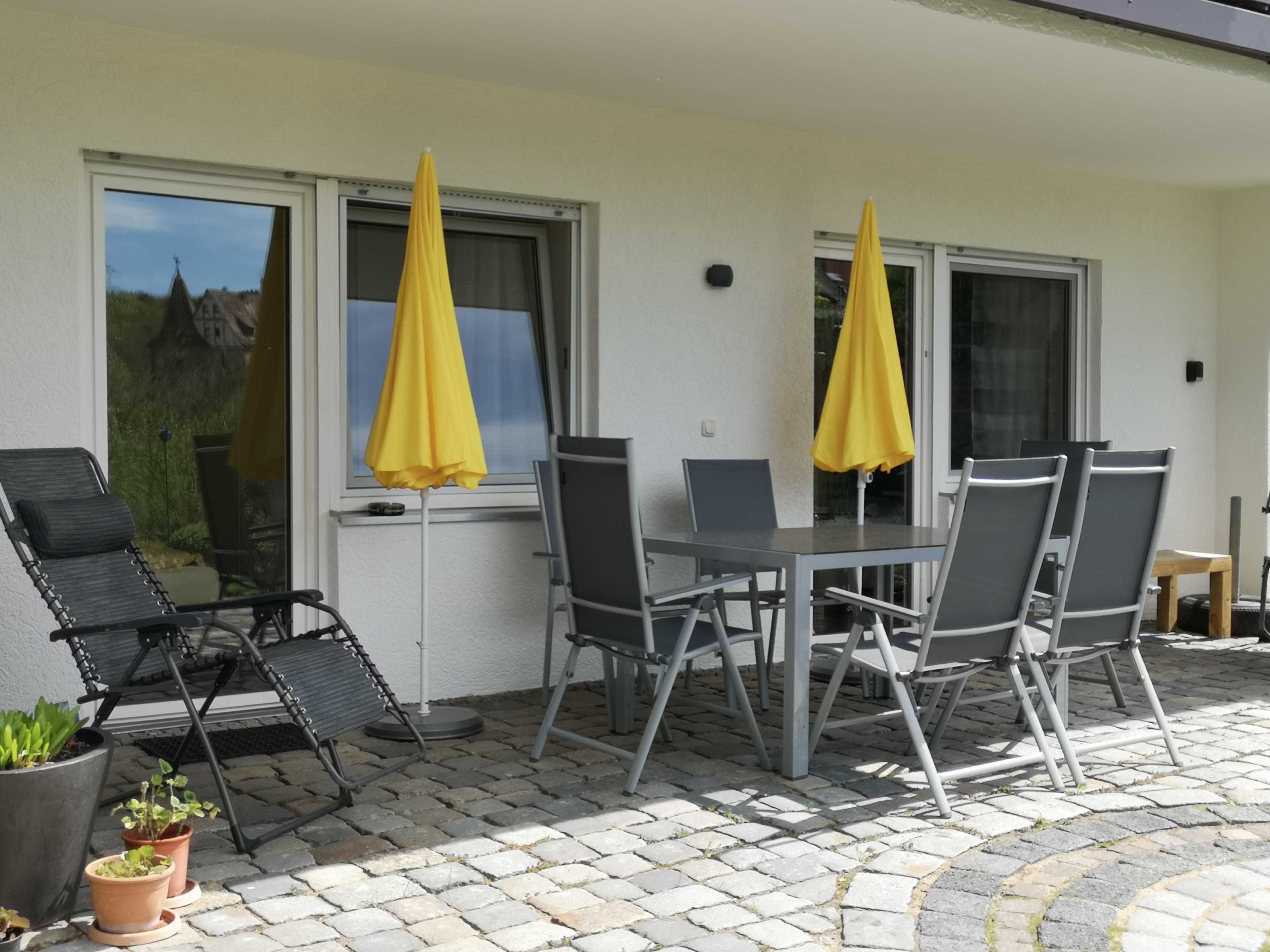 Genießen Sie Ihren Urlaub in unserer sonnigen und großzügigen Terrassenwohnung mit traumhaftem Blick auf Schloss Wiesenthau.