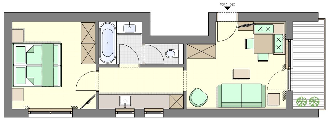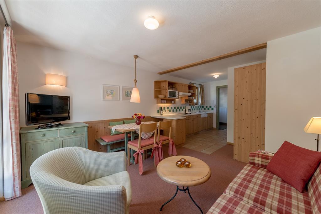 Schöne Ferienwohnungen mit ca. 41 m² für 2-4 Personen: 1 Doppelzimmer; Badezimmer mit Badewanne; separates WC; 1 vollausgestattete offene Küche mit Kabelfernsehen, Radio, Safe, Schlafsofa für bis zu 2 Personen, Cerankochfeld, Kühlschrank, Kaffeemaschine, Mikrowellenherd, Geschirrspüler, Toaster, Wasserkocher, Geschirr, Gläser, Besteck, Töpfe etc. Balkon oder Sonnenterrasse. Nichtraucherwohnung