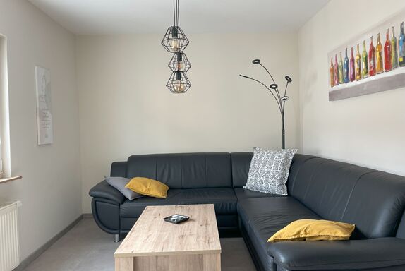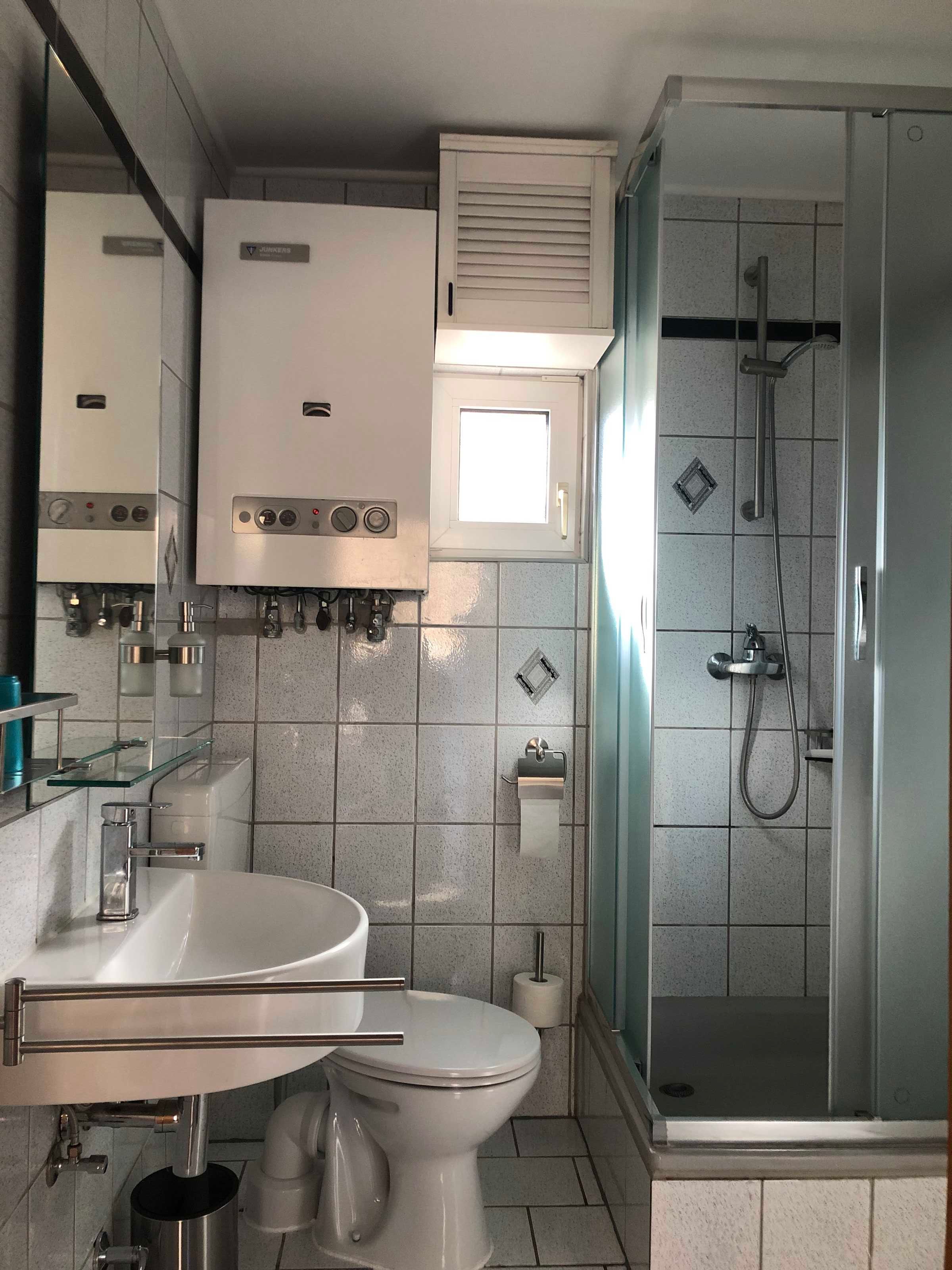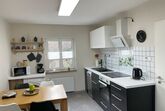 Ihr findet ein komplett eingerichtetes Haus mit 4 Zimmern vor: Wohnzimmer, Wohnküche, Bad und zwei Schlafzimmer im 1. OG Schlafzimmer II ist ein Durchgangszimmer zum Schlafzimmer I. Das Haus ist mit zentraler Warmwasserversorgung und Zentralheizung ausgestattet und liegt in einer sehr ruhigen Seitenstraße.