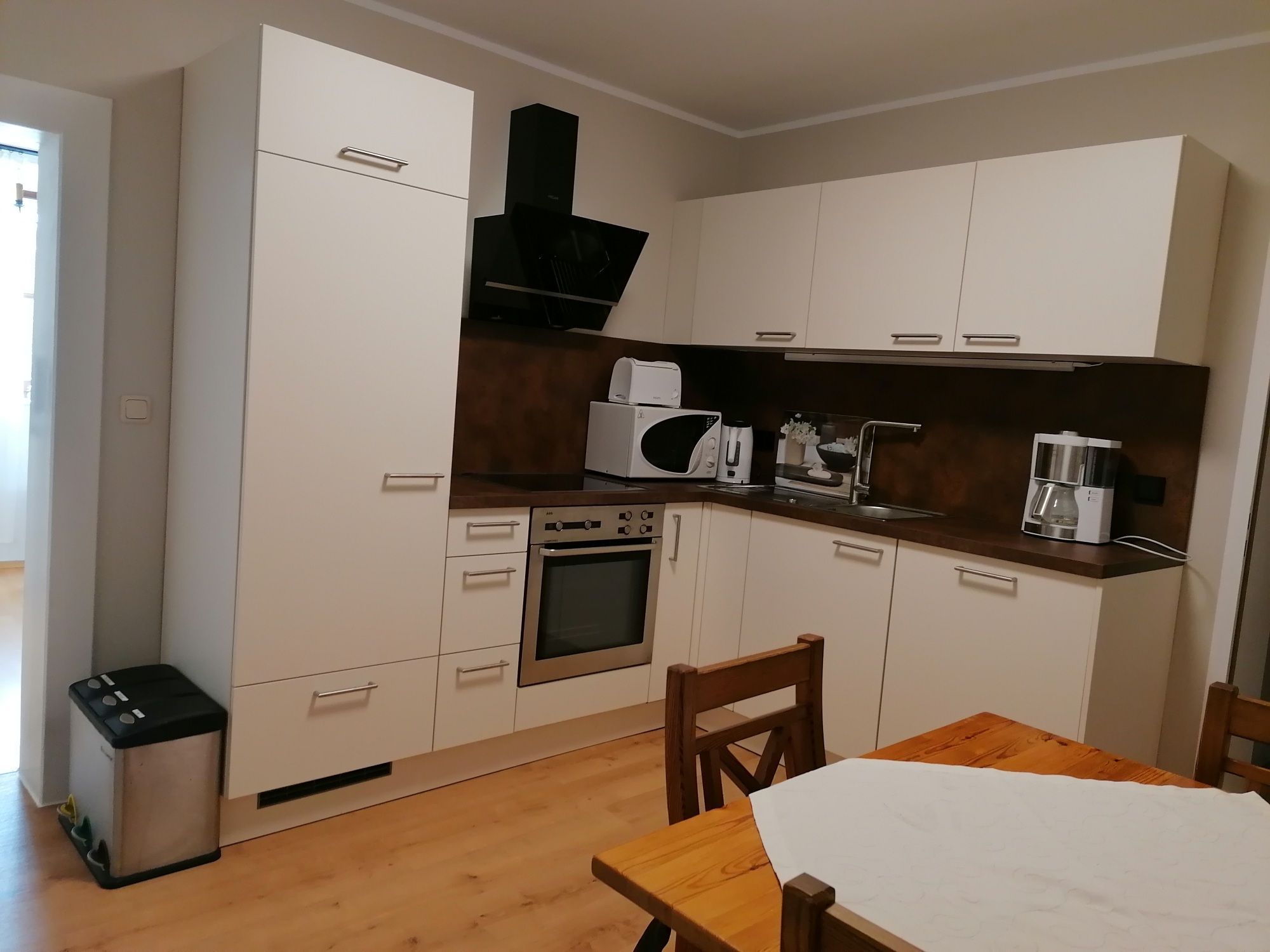Küche mit großzügiger Ausstattung. NEU:Die FeWo Apfelblüte hat 2025 eine neue Küche bekommen!