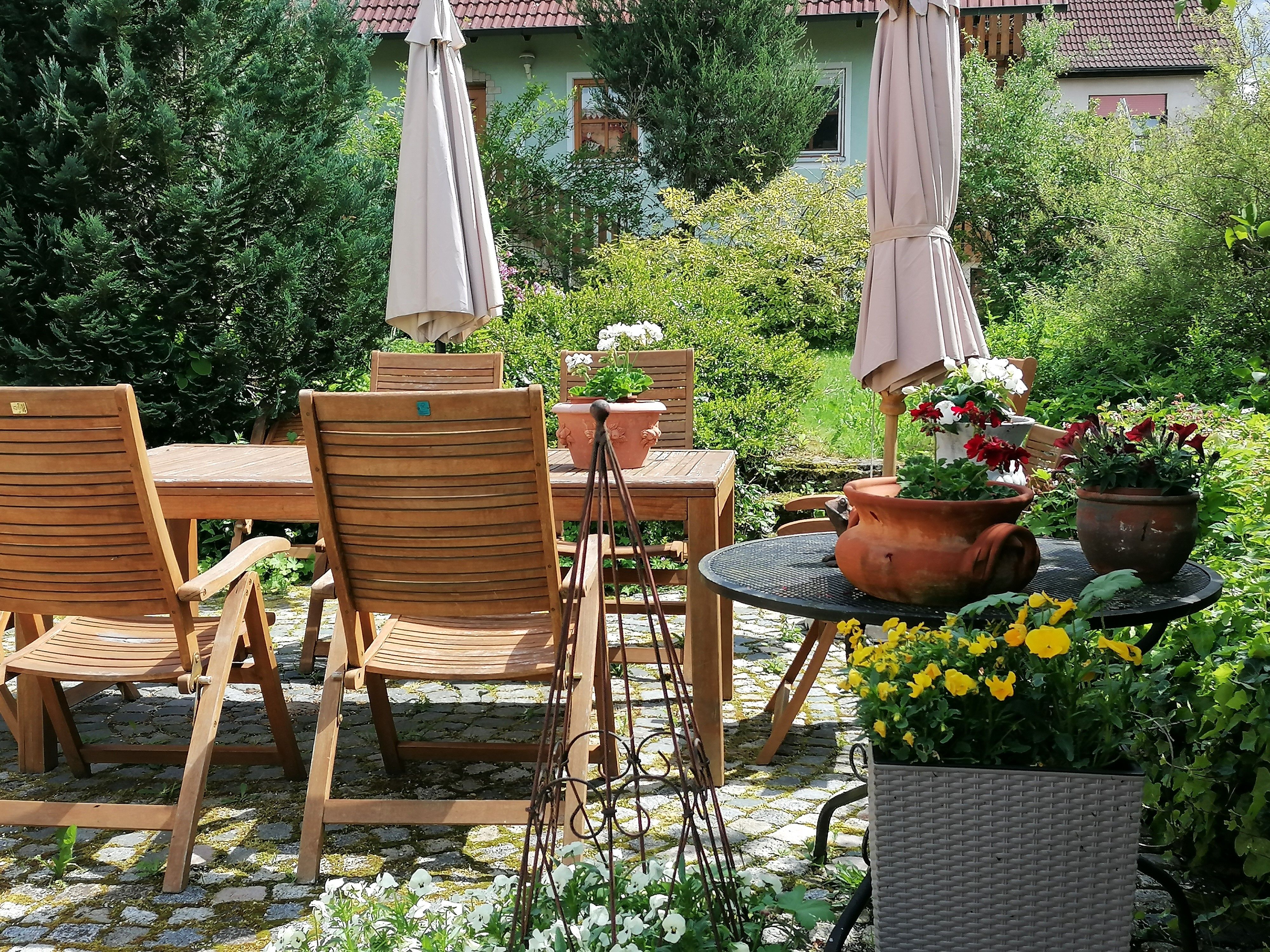 In unserem Blumengarten laden verschiedene Sitzgruppen sowie ein Waldsofa zum Entspannen, Erholen, Spielen und Ausruhen ein.